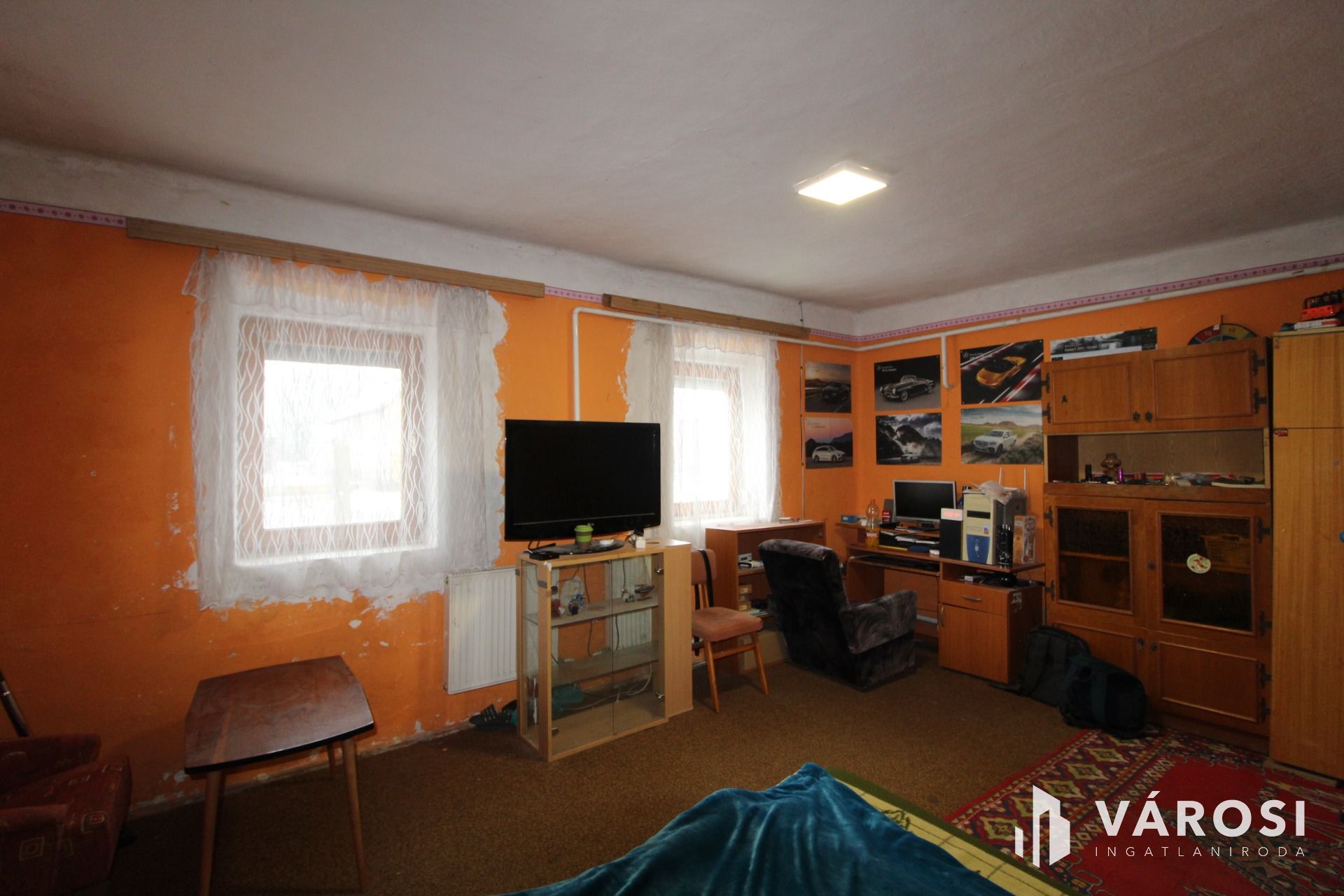 Külön bejárattal található a konyha és egy nappali-szoba, itt van a vegyes tüzelésű kazán elhelyezve.