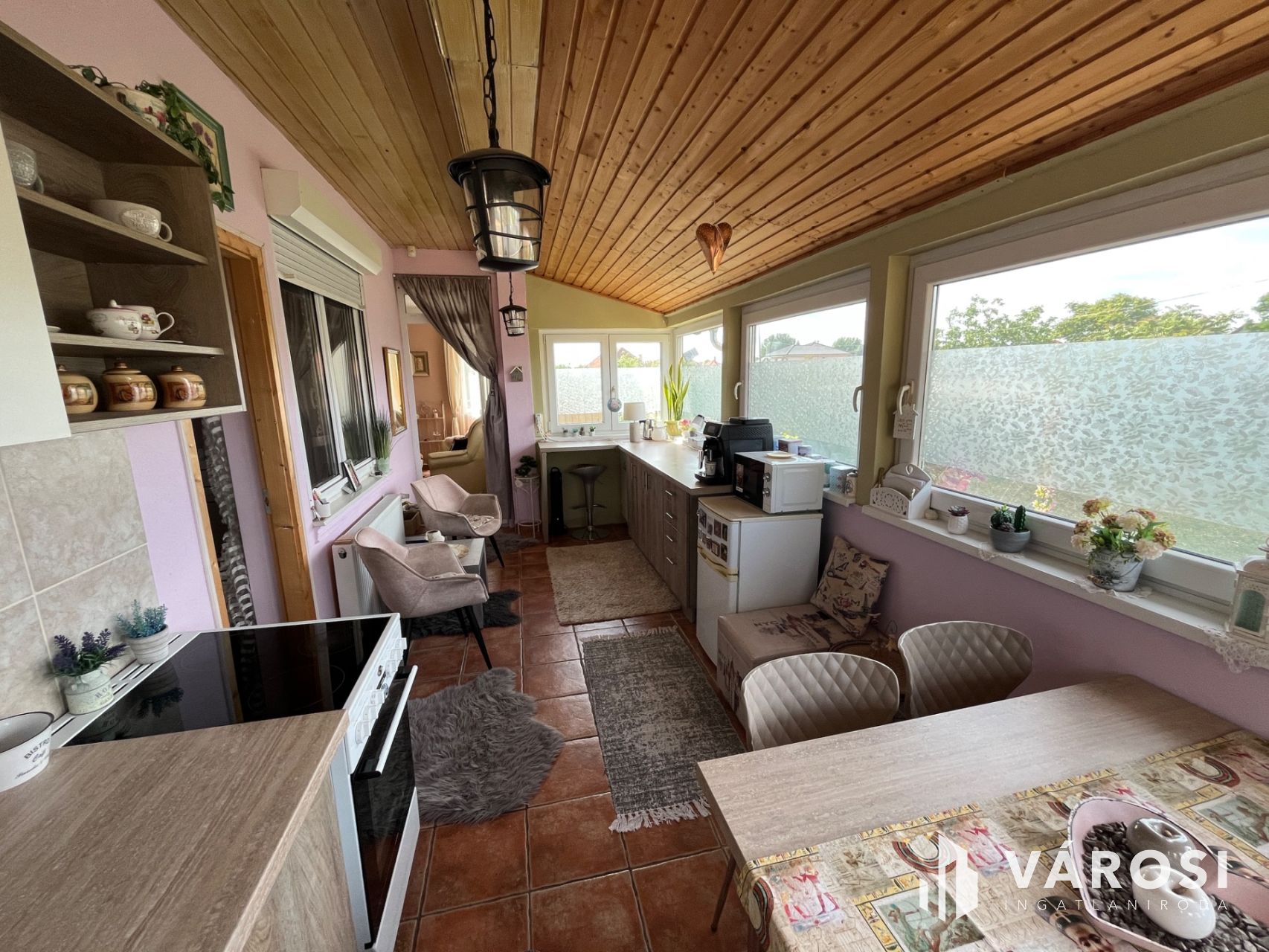 Az öt tágas szoba és az amerikai konyha ideális választás nagyobb családok számára is. A külön fürdő és WC növeli a kényelmet, míg a redőnyözött ablakok garantálják az otthon meghitt hangulatát. A terasz tökéletes helyszín a reggeli kávézáshoz vagy esti baráti összejövetelekhez.