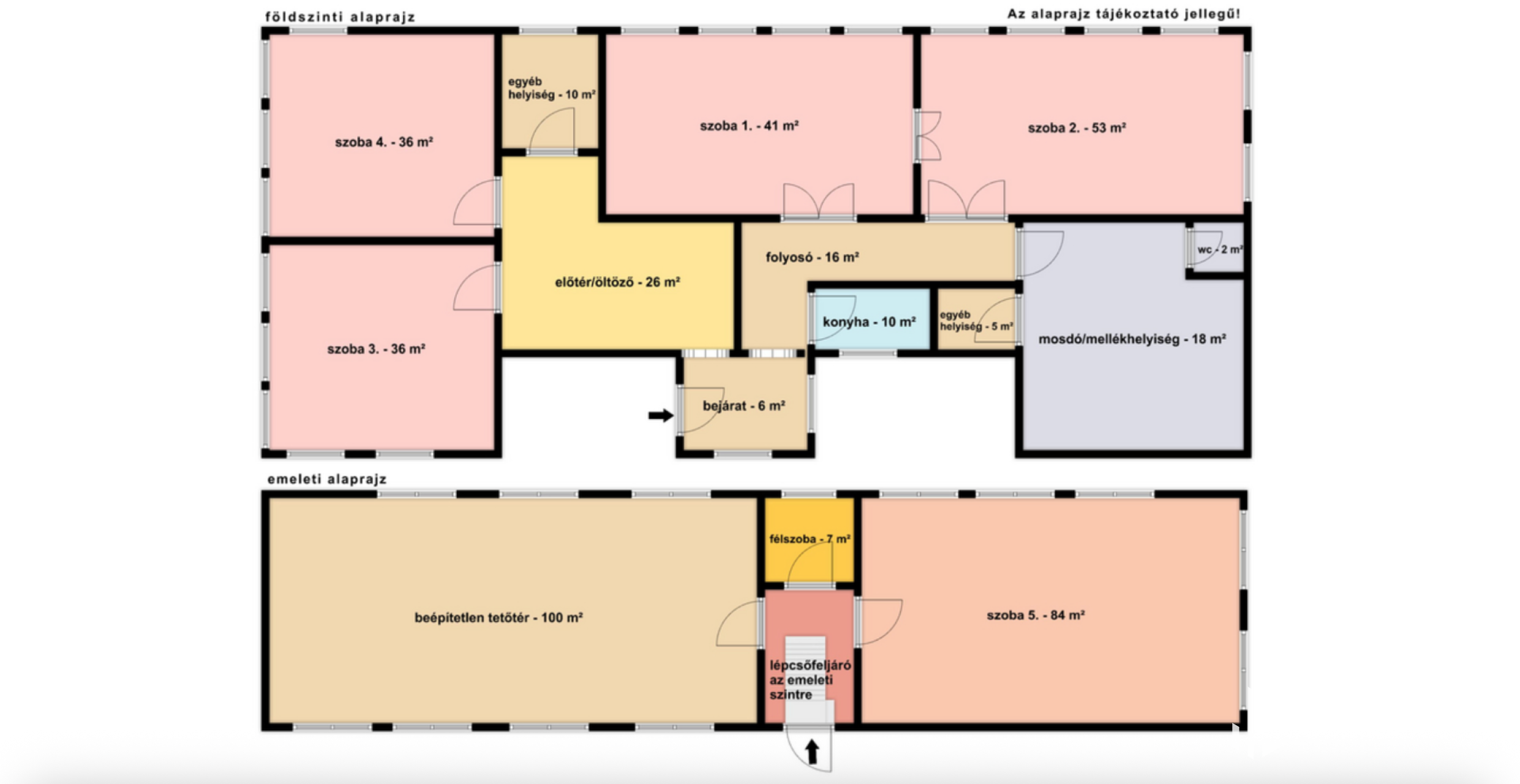 - A tetőtér egyik része (~100 m²) beépítetlen, világos, nagy ablakfelületekkel – további bővítési potenciált kínál