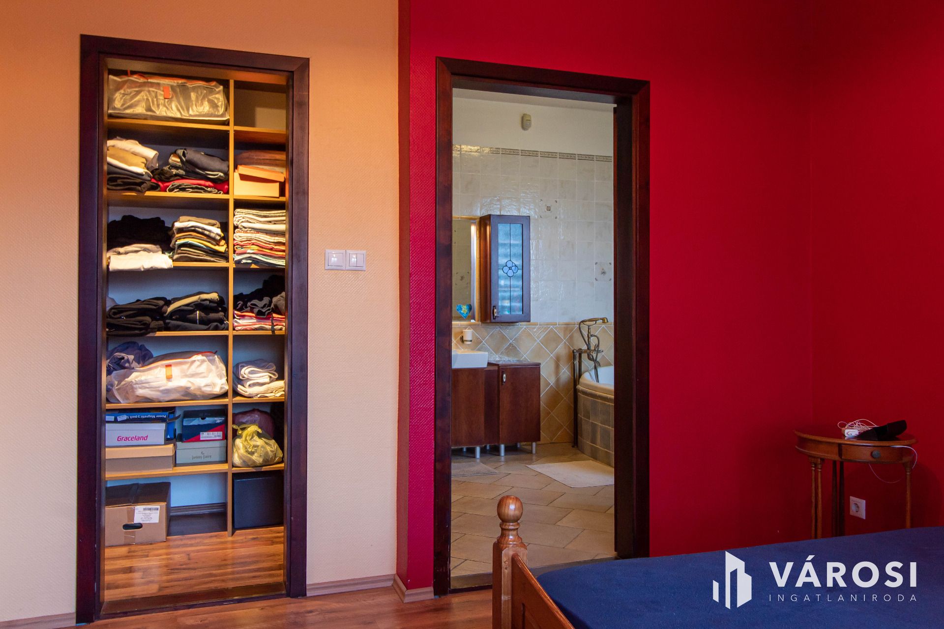 Az egyszintes kialakítás igazi ritkaság a mai piacon. Nincsenek lépcsők, nincsenek szintkülönbségek — a ház kényelmesen élhető fiatal családnak és idősebb tulajdonosnak egyaránt. Az öt hálószoba lehetőséget ad nagycsaládos életre, vendégszobára vagy akár dolgozószobák kialakítására. A két fürdőszoba és a külön vendég mosdó a mindennapi komfortot szolgálja, míg a gardróbok és kamra a praktikumot.