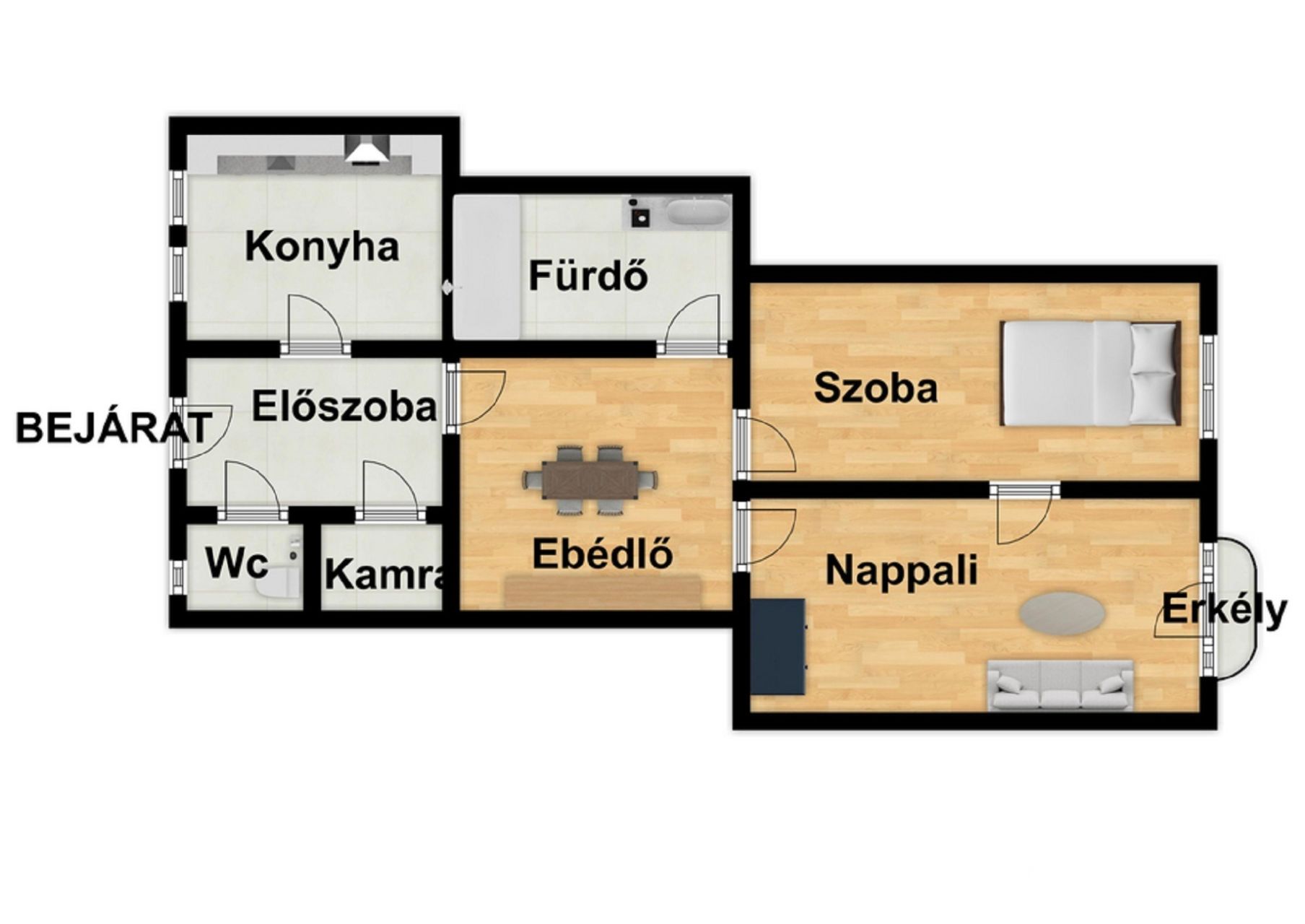 A lakás remek elrendezéssel redelkezik de akár könnyedén alakíthatóak is!