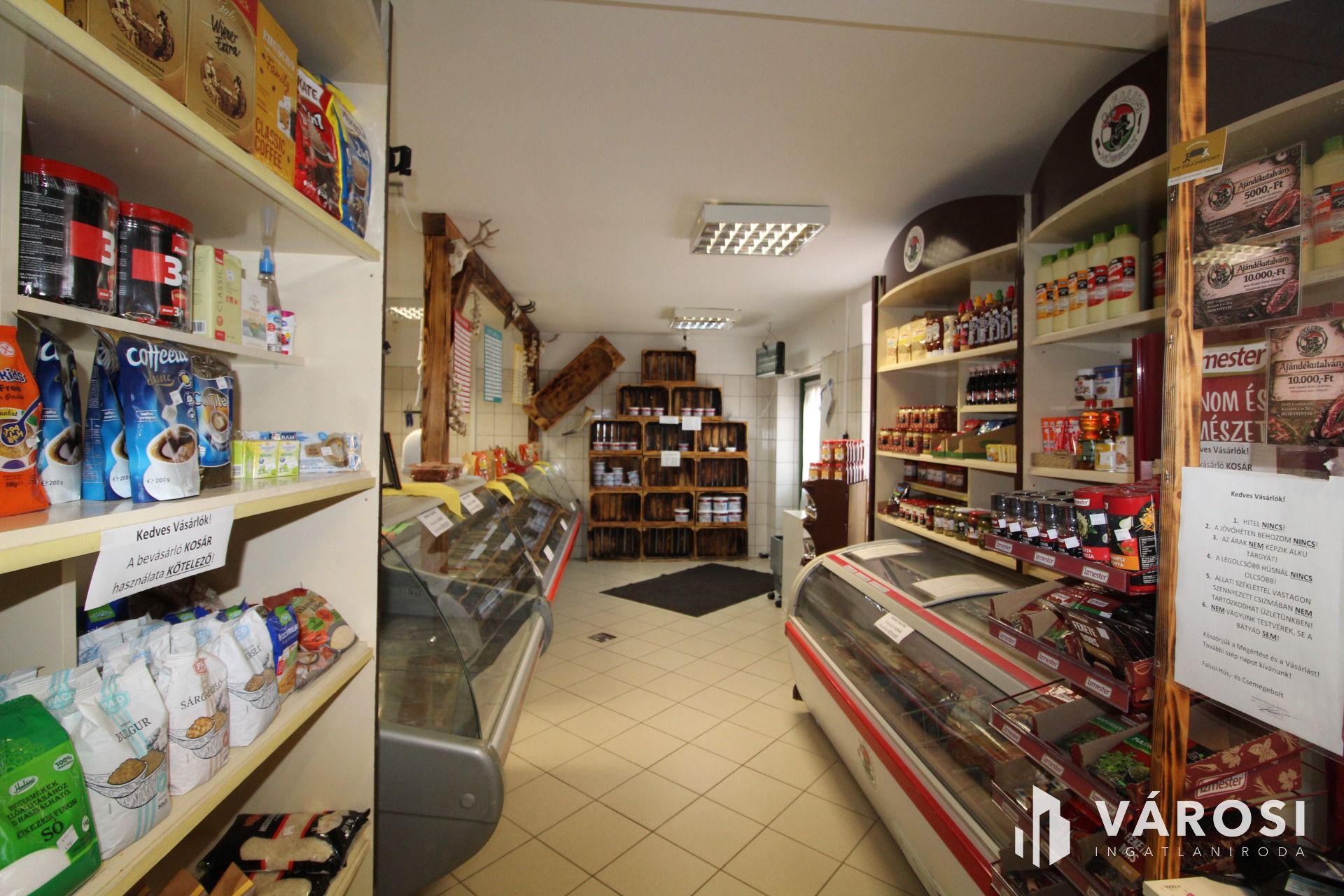 Az üzlet eladási ára tartalmazza a teljes berendezést, a hűtőpultokat, polcokat, és egyéb eszközöket.
