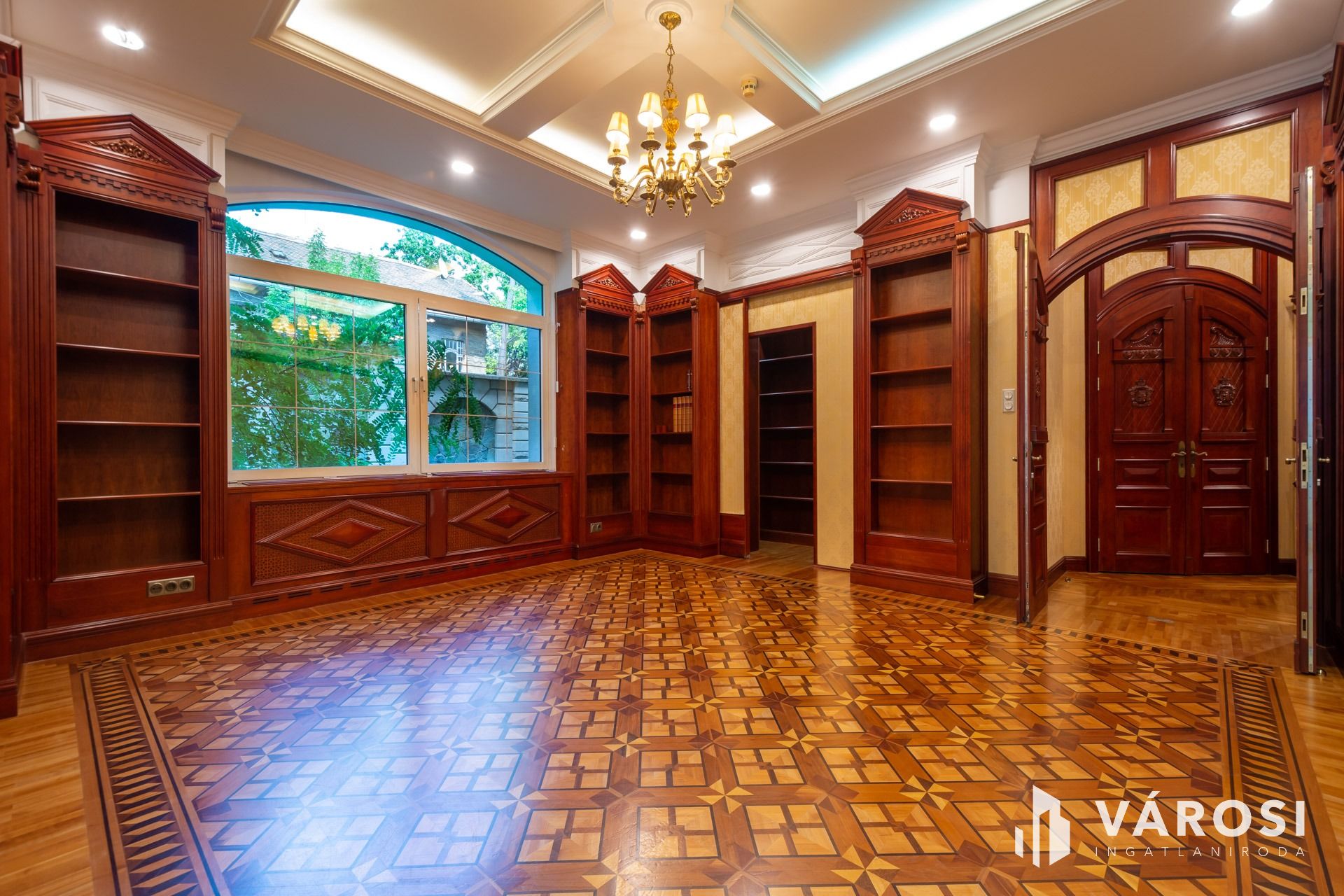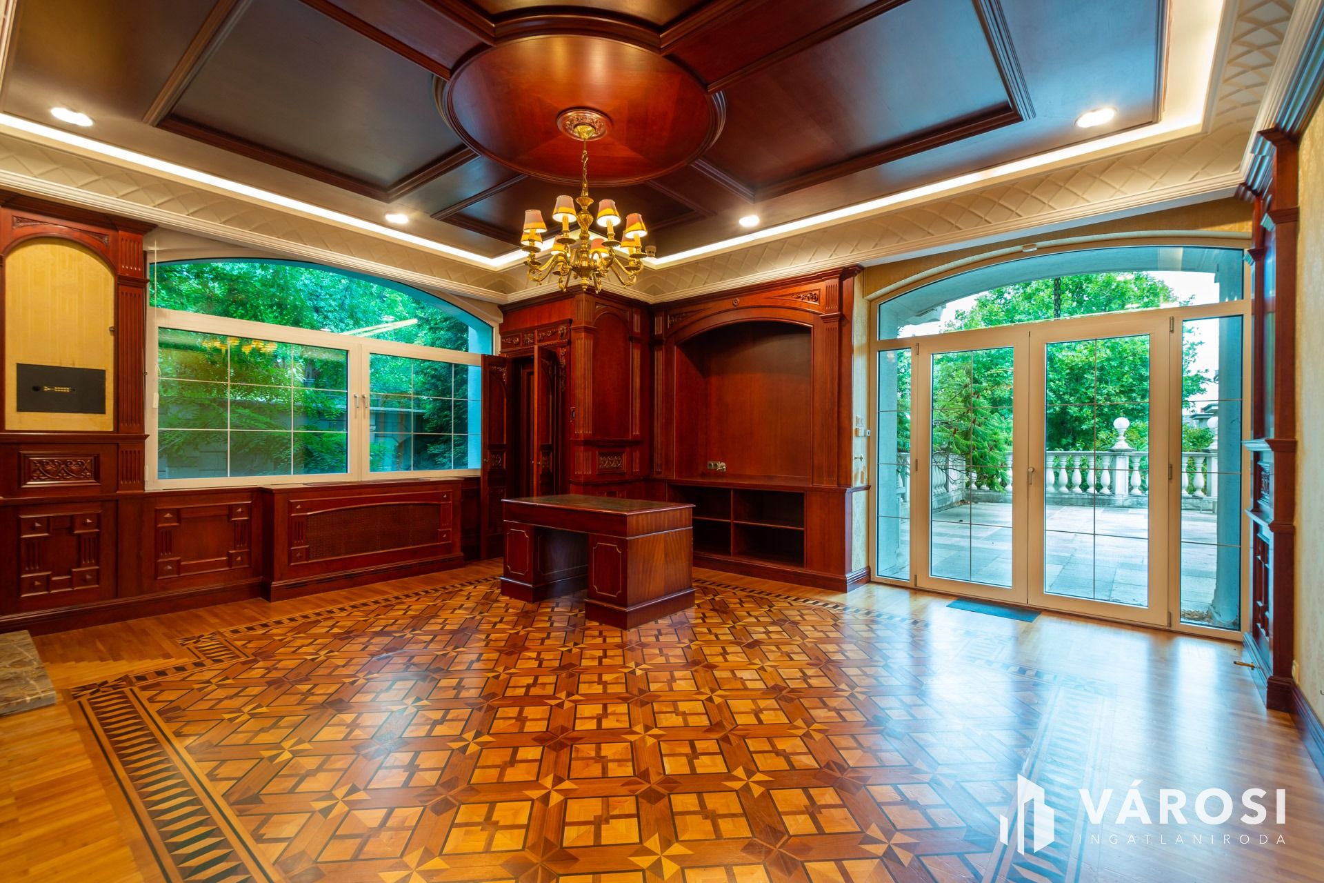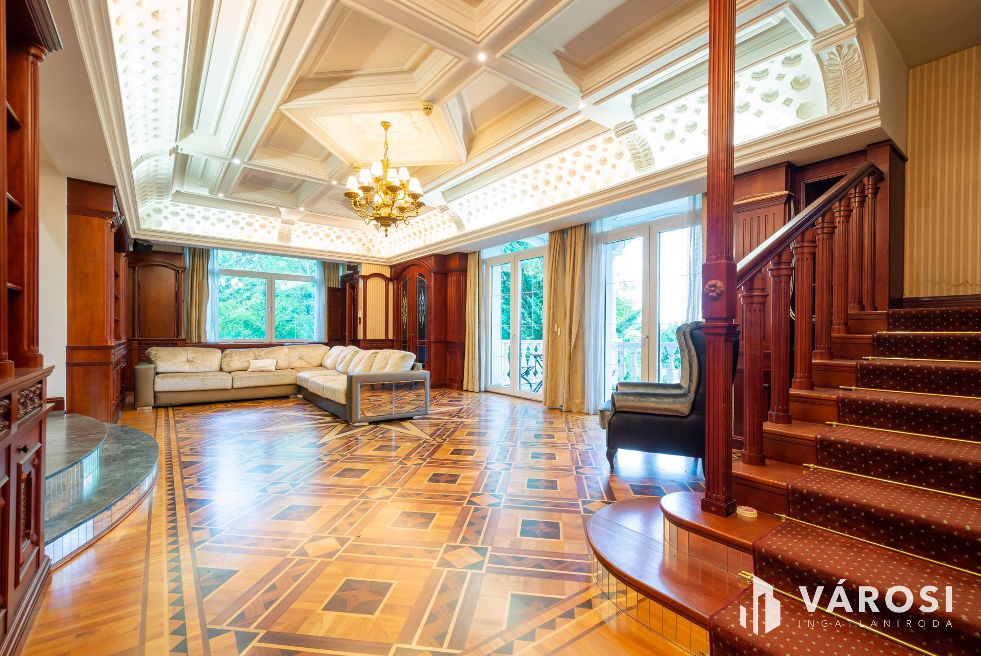 Az intarziás parketták, a márvány burkolatok, a kazettás mennyezetek, a tömörfa, koronás ajtók és fafaragásokkal díszített beépített bútorok, az ólomüveg betétek, az exkluzív tapéták, az egyedi csillárok mind-mind a legmagasabb luxus minőségében készültek.