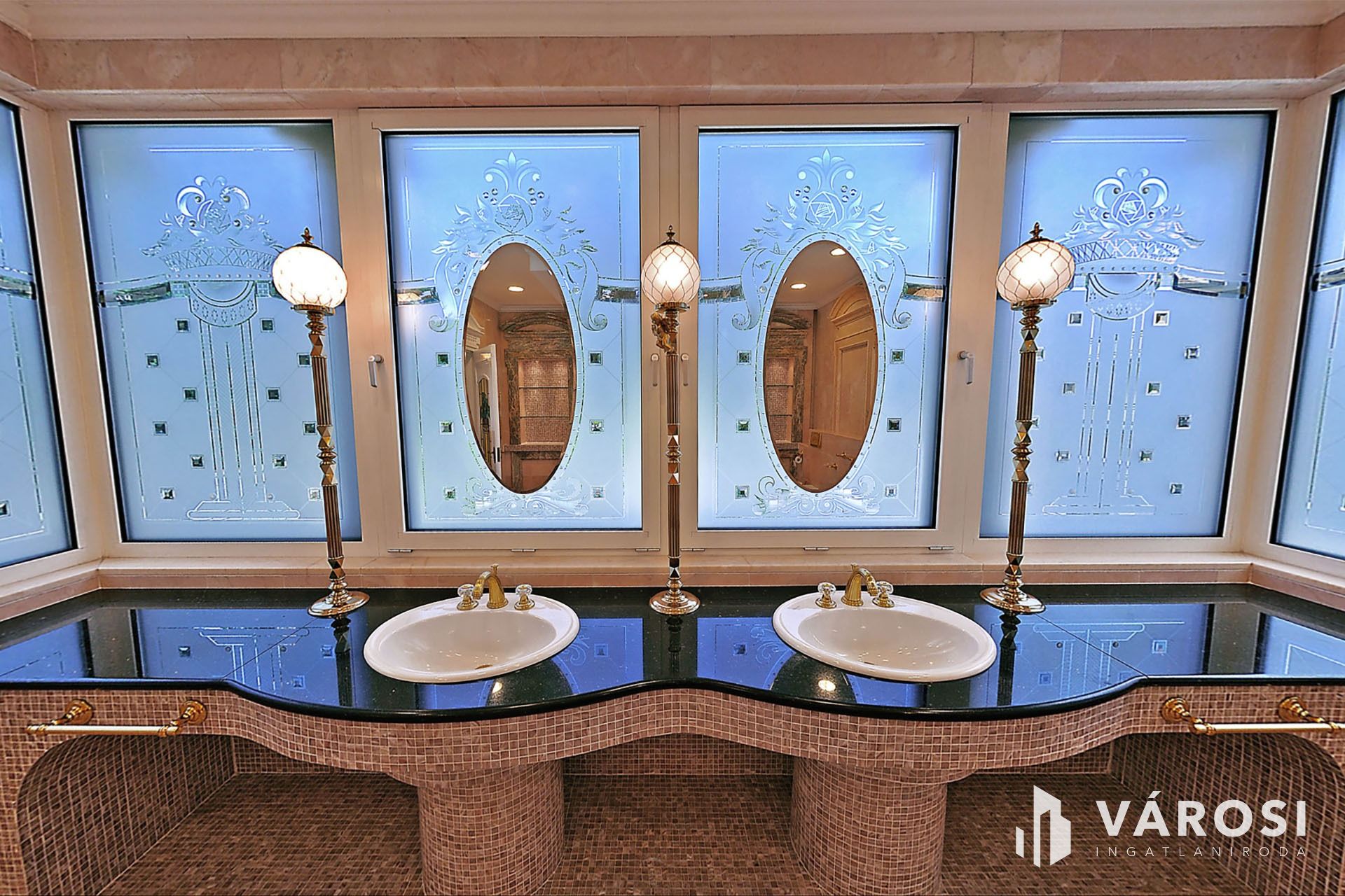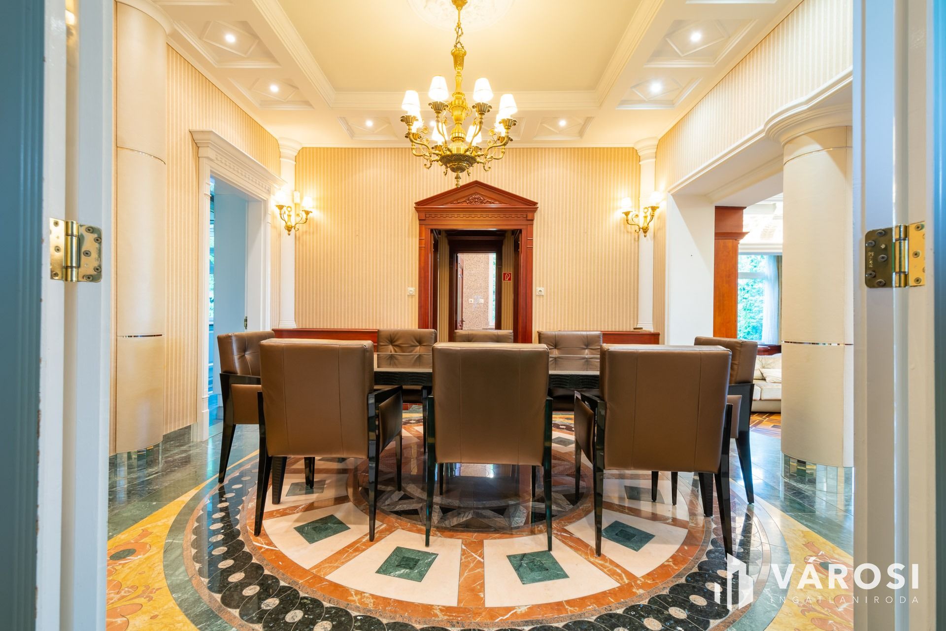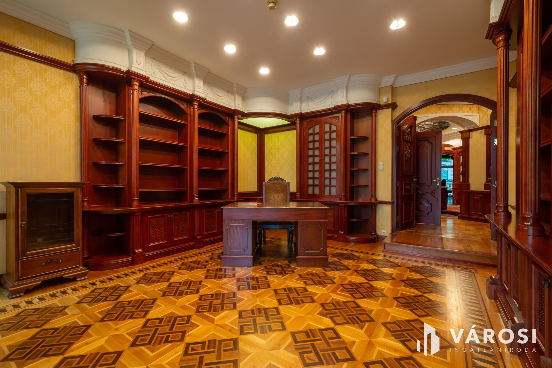 Az intarziás parketták, a márvány burkolatok, a kazettás mennyezetek, a tömörfa, koronás ajtók és fafaragásokkal díszített beépített bútorok, az ólomüveg betétek, az exkluzív tapéták, az egyedi csillárok mind-mind a legmagasabb luxus minőségében készültek.