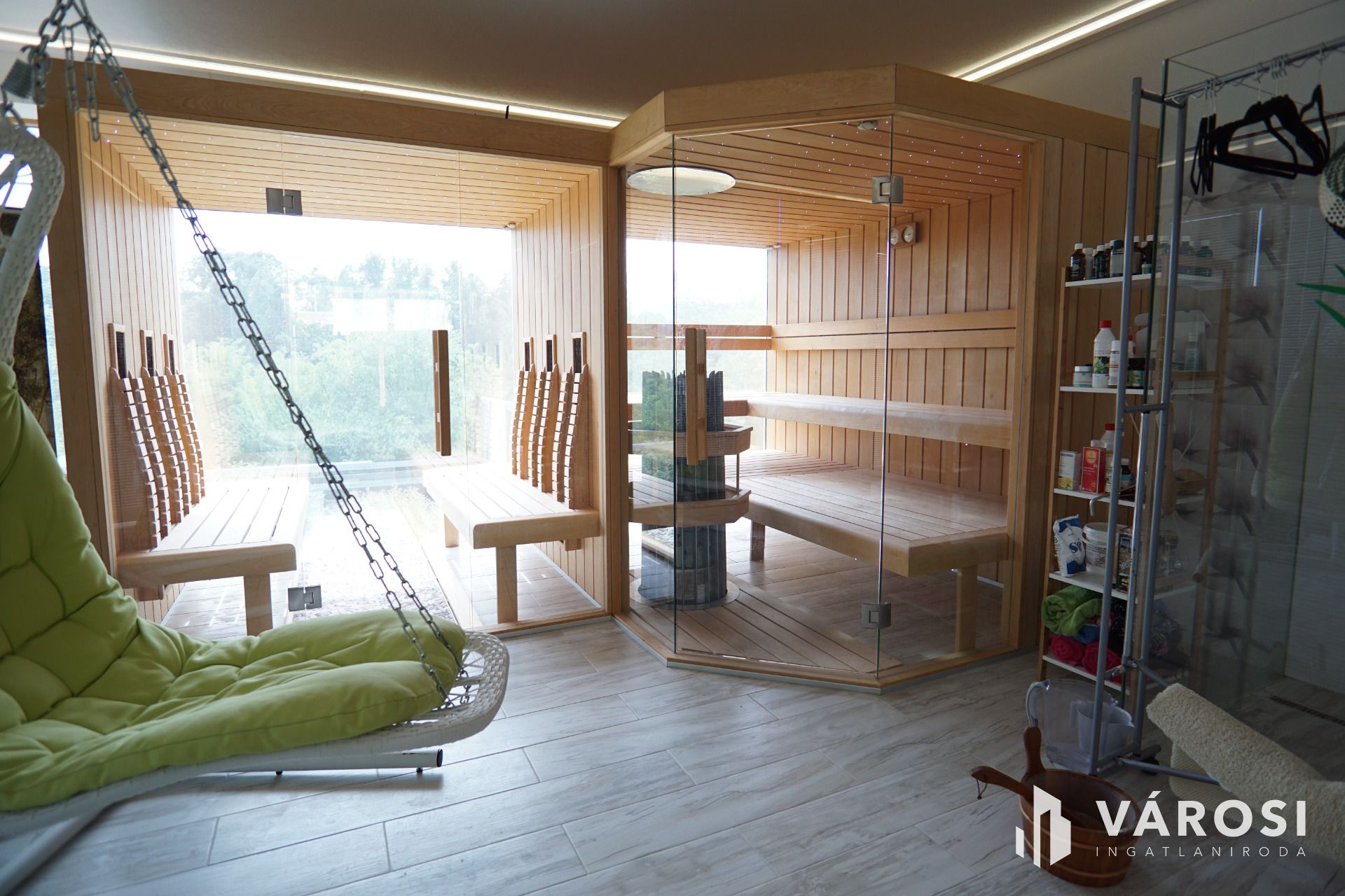 Nagy négyzetméterrel rendelkező, több helységből álló épület, hangulatvilágítással, számos wellness lehetőséggel. ( 5 fős Jakuzzi , Infar és Finn szauna, panorámás kilátással, só-fal, 5-6 fős fa tüzelésű Dézsa nyitott teraszon panorámával, konditerem elektromosan elhúzható tetővel, sport pálya)