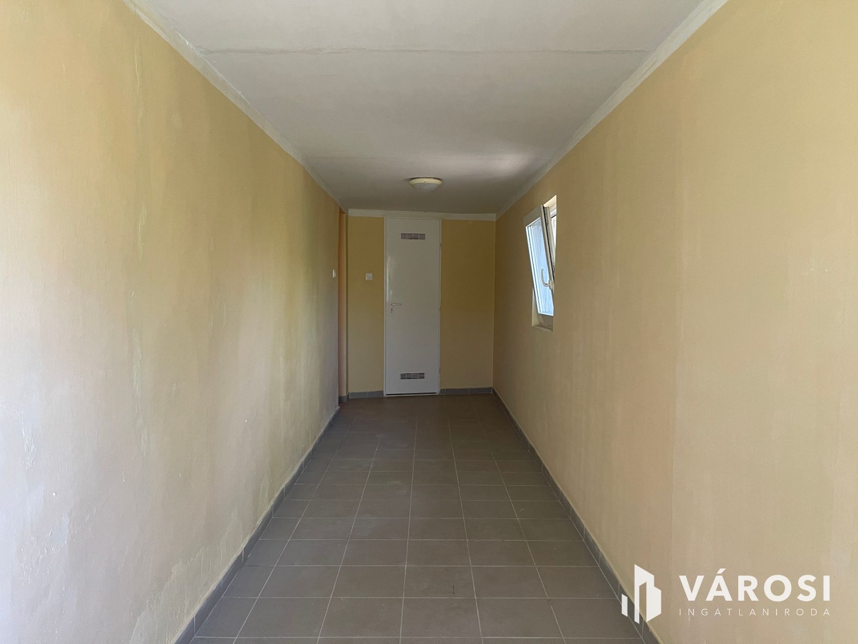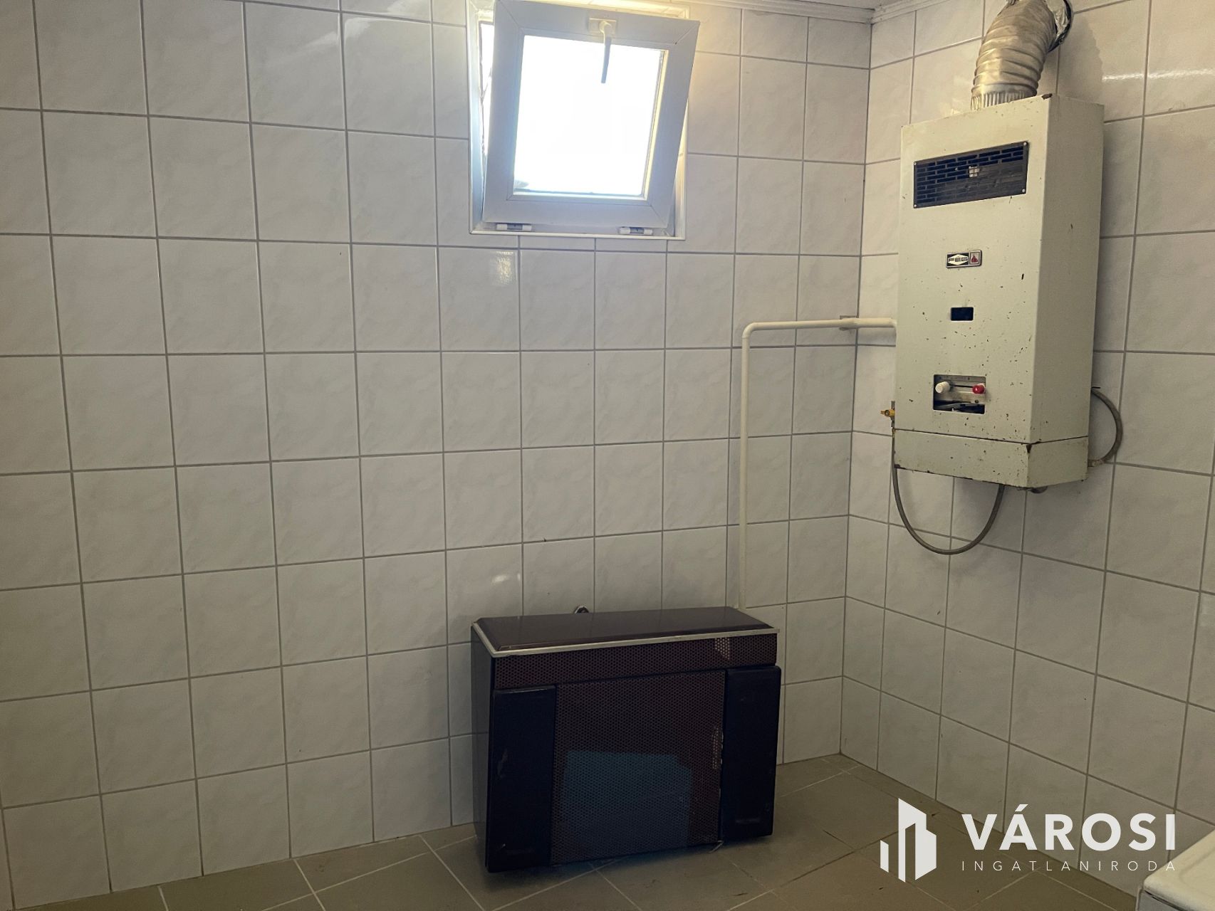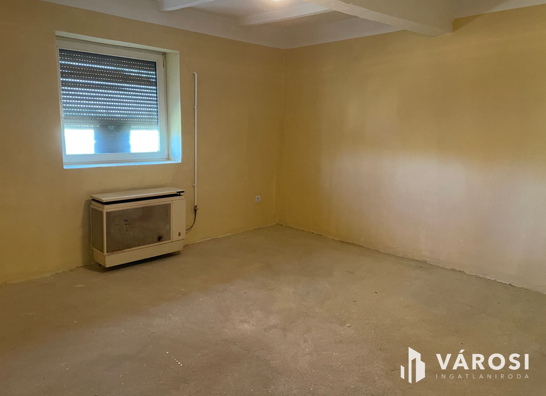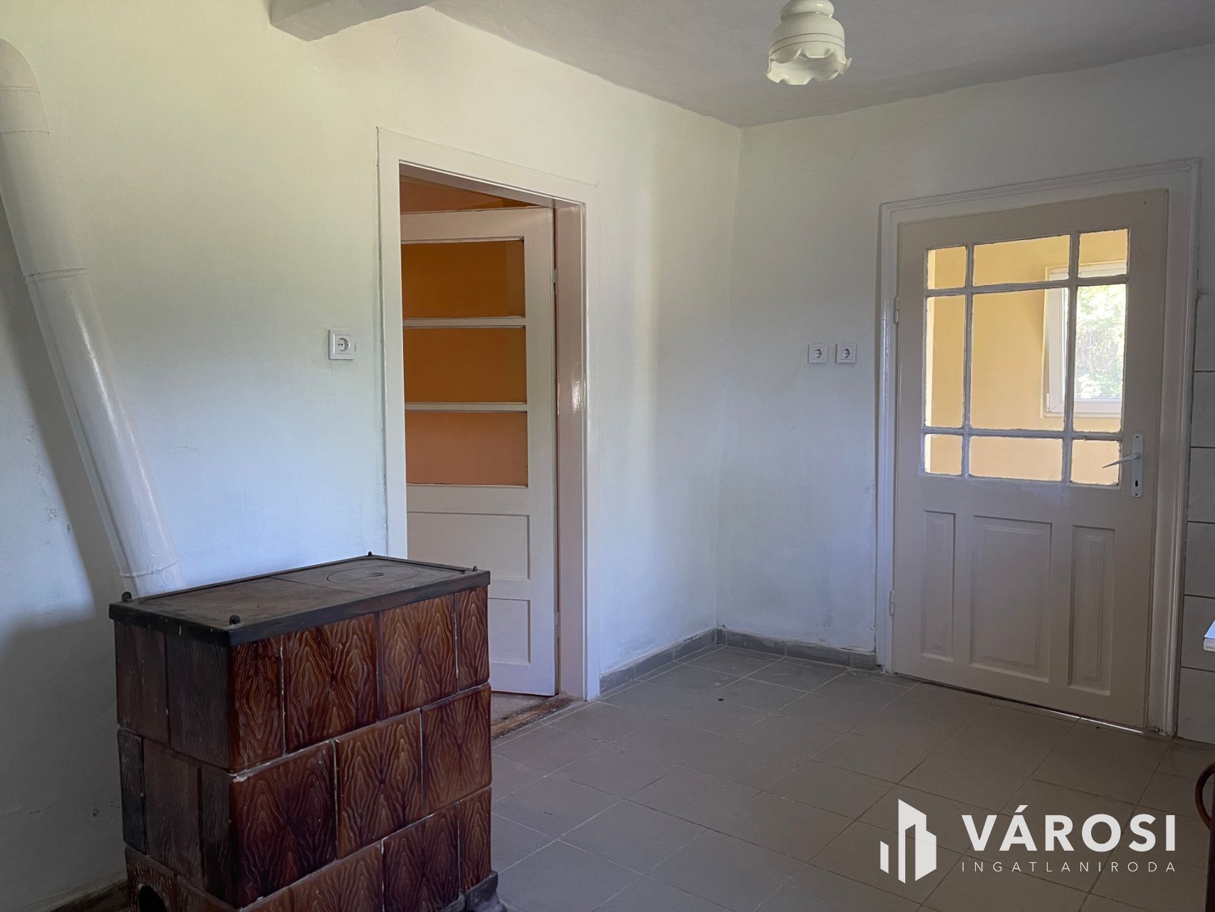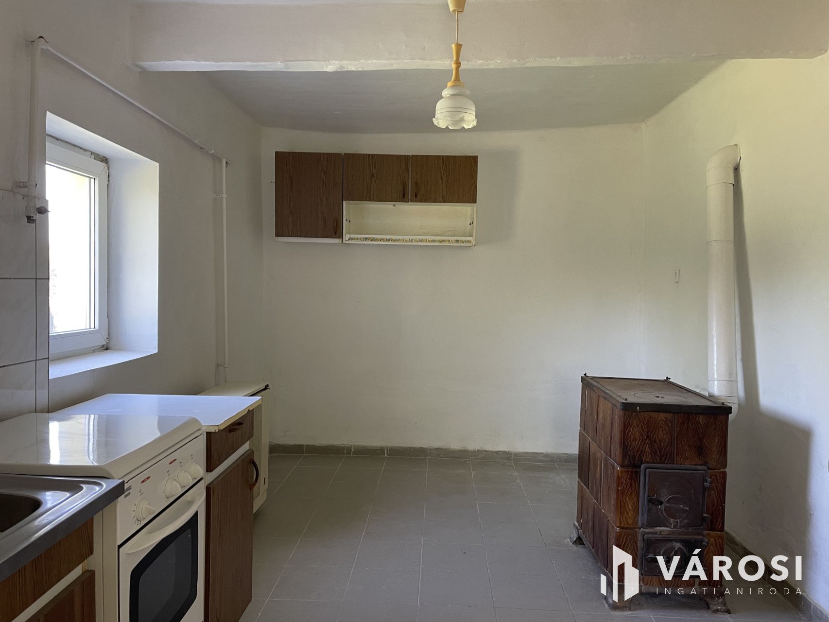 A 60 m2-es házat jelenlegi elosztás szerint egy szoba, konyha, kamra, fürdőszoba és közlekedő alkotja. Viszont az elrendezése lehetővé teszi, hogy praktikusan átalakítható legyen. Így kihozható belőle 2 szoba is és a hosszú széles közlekedő akár egy nappali-konyhaként is szolgálhat. De ha valakinek így ideális, azonnal költözhető, hiszen frissen van festve kívül-belül. Minden helység betonozott, és mindenhol műanyag nyílászárók vannak. Fűtését gázkonvektorok biztosítják és ezen kívül még a mostani konyhában egy cserépkályha is működik. A víz, gáz, villany mellett a csatorna rendszer is kiépítésre került az udvarig.