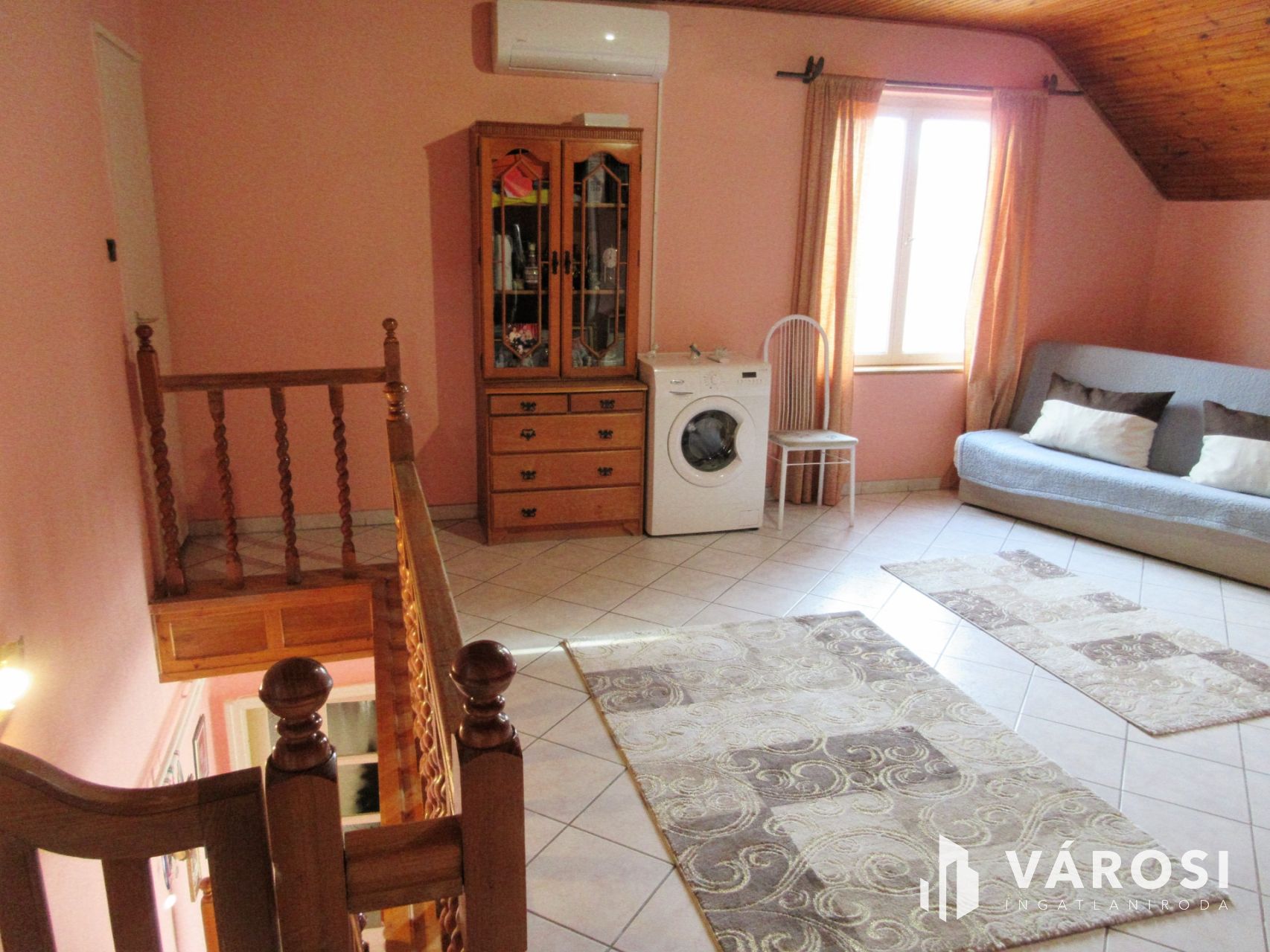 Szentesen kínálom eladásra ezt a két szintes családi házat, mely B30-as blokktéglából épült. A központi fűtésről jelenleg egy vegyestüzelésű kazán gondoskodik, mely könnyedén kiváltható egy kondenzációs kazánnal. A nyár melegét 2db klíma berendezés enyhíti. A ház a két fedett terasz mellett egy nyári konyhával és egy nagy, 24 nm-es garázzsal is büszkélkedhet. Akár két generációnak is alkalmas, mert az emeleten is és a földszinten is van: 2 hálószoba + nappali + fürdőszoba +WC is. A ház elrendezése megfontolt és logikus, a hálószobák nem egymásból nyílnak. A telek méret 613 négyzetméter, mely könnyen karban tartható, parkosított.