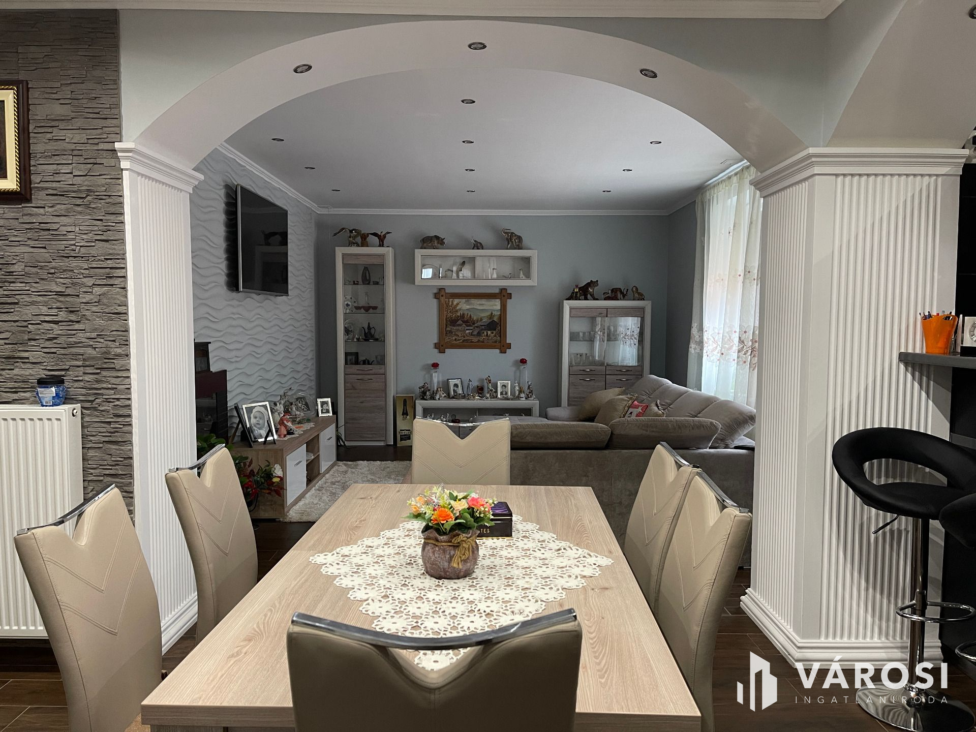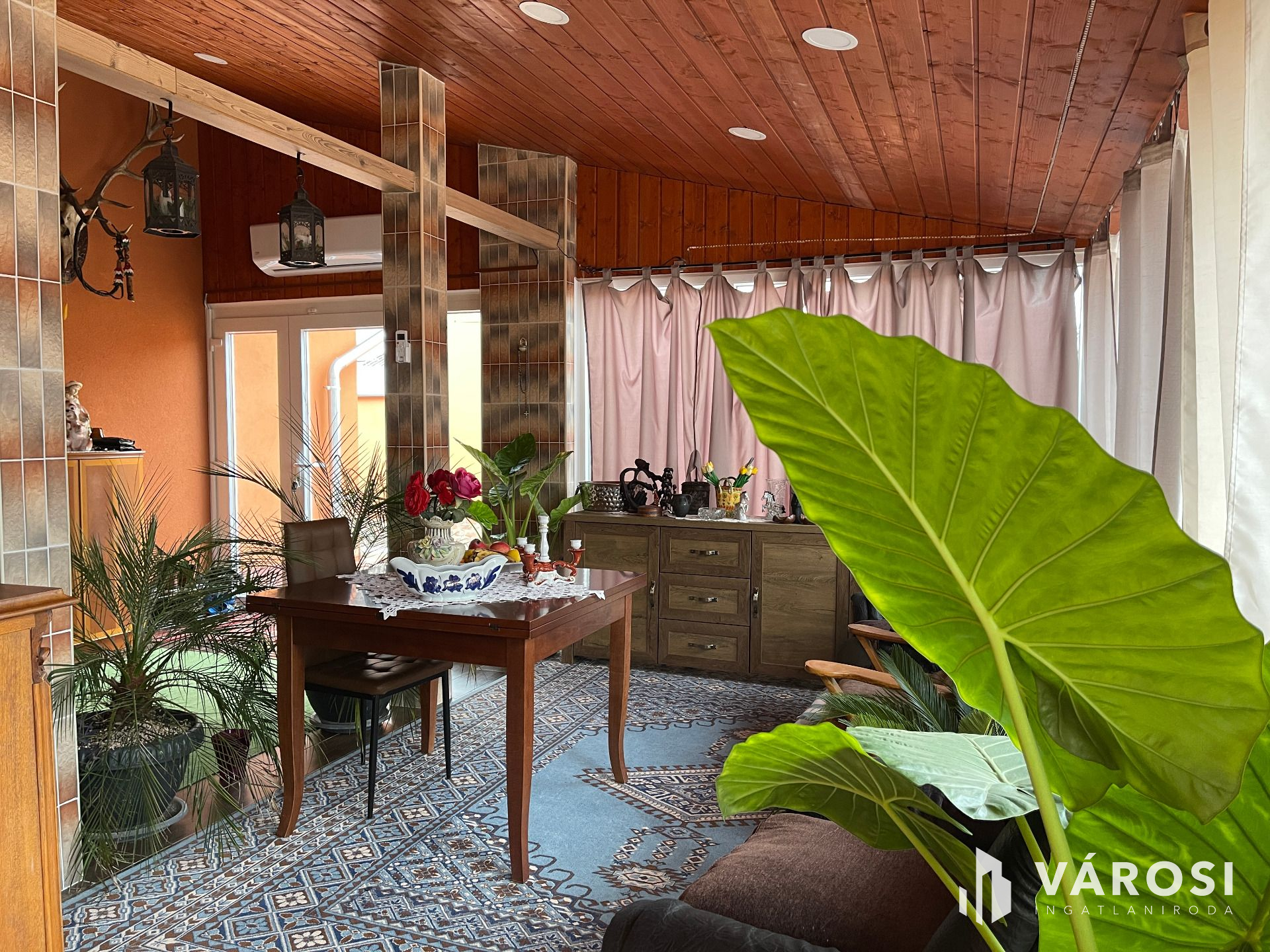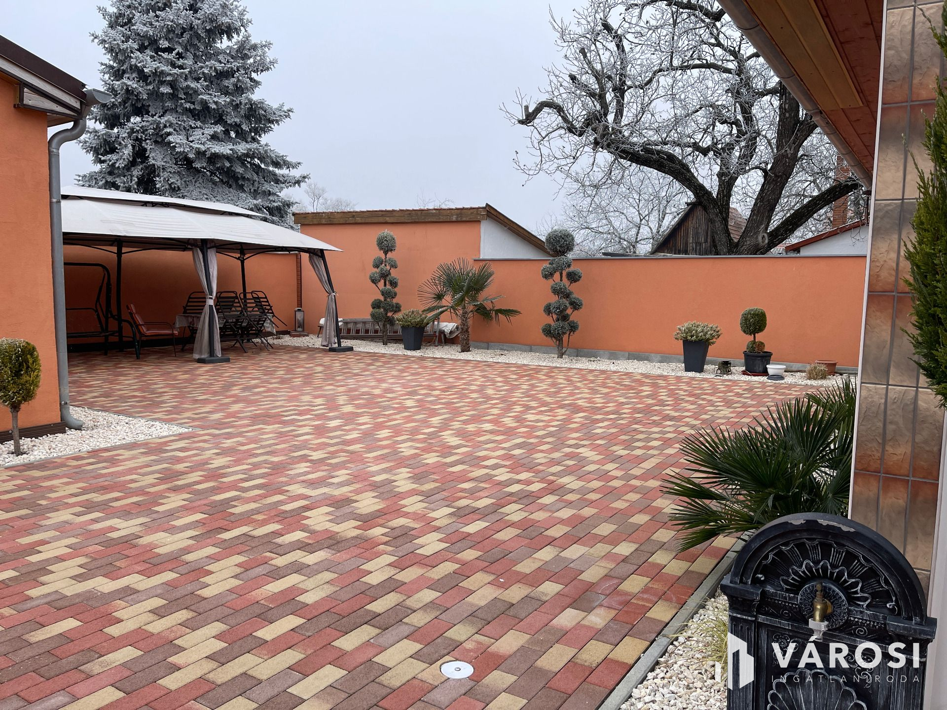 Egy ingatlan értékét leginkább a lokációja határozza meg. Békéscsabának egy ilyen kedvelt területe az Árpád fürdő környéke, ahol az eladásra kínált ingatlan található. Ami nagyon különlegessé teszi, az a mediterrán hangulatú udvara és hangulatos télikertje. Az udvar teljesen térkövezett, ami a lakóépületen kívül helyet ad egy külön álló garázsnak is. A házba a télikerten keresztül juthatunk be. Ez egy tágas 40 m2-es helyiség és kiváló helye lehet családi összejöveteleknek, hiszen innen nyílik egy kinti konyha egy nagy kamrával, valamint egy mosókonyha. Ez a rész egy nagy teljesítményű klímával fűthető és hűthető. A lakórész 162 m2, földszintjén helyezkedik el az amerikai konyhás nappali, fürdőszoba, tároló és egy nagy hálószoba. A nappali és a lenti háló falát látványos falburkolat borítja. Az emelet 3 szobából és egy kádas fürdőszobából áll további tárolókkal ellátva. Ezen a szinten is használható egy másik klímaberendezés. Az ablakok redőnyösek. Az ingatlan a mostani kellemes belső hangulatát másfél évvel ezelőtt kapta, ekkor végeztek rajta legutóbb némi átalakítást. Ezt megelőzően néhány évvel történ a teljes felújítása, korszerűsítése. Ezek alapján az ingatlan további jellemzői: