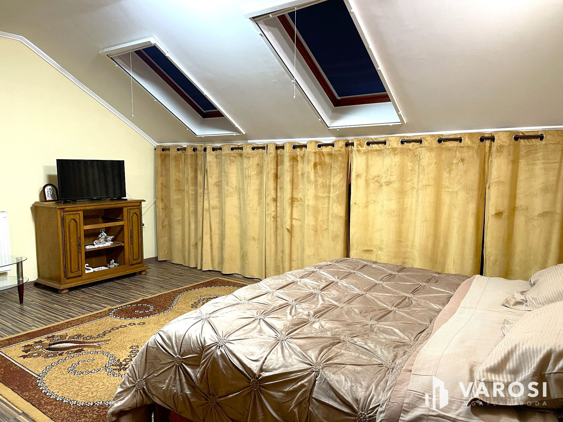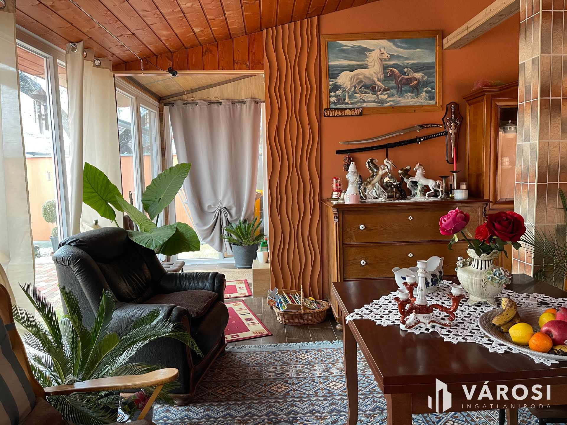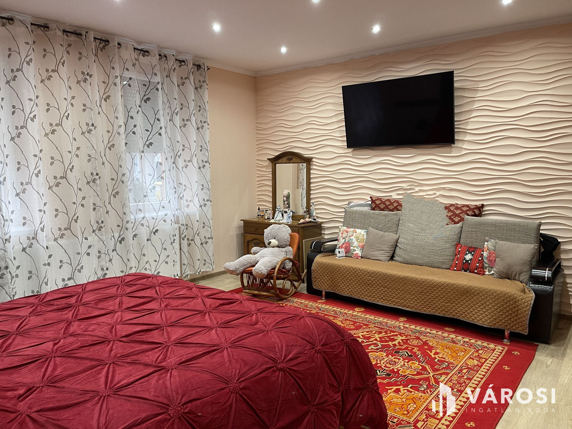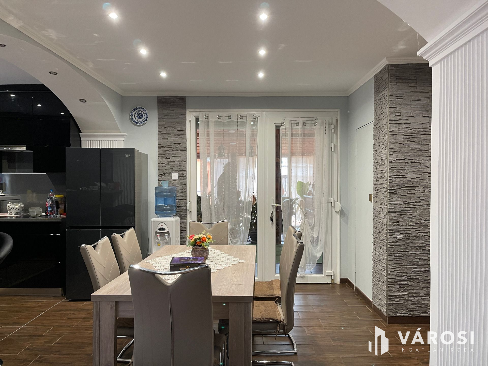 Egy ingatlan értékét leginkább a lokációja határozza meg. Békéscsabának egy ilyen kedvelt területe az Árpád fürdő környéke, ahol az eladásra kínált ingatlan található. Ami nagyon különlegessé teszi, az a mediterrán hangulatú udvara és hangulatos télikertje. Az udvar teljesen térkövezett, ami a lakóépületen kívül helyet ad egy külön álló garázsnak is. A házba a télikerten keresztül juthatunk be. Ez egy tágas 40 m2-es helyiség és kiváló helye lehet családi összejöveteleknek, hiszen innen nyílik egy kinti konyha egy nagy kamrával, valamint egy mosókonyha. Ez a rész egy nagy teljesítményű klímával fűthető és hűthető. A lakórész 162 m2, földszintjén helyezkedik el az amerikai konyhás nappali, fürdőszoba, tároló és egy nagy hálószoba. A nappali és a lenti háló falát látványos falburkolat borítja. Az emelet 3 szobából és egy kádas fürdőszobából áll további tárolókkal ellátva. Ezen a szinten is használható egy másik klímaberendezés. Az ablakok redőnyösek. Az ingatlan a mostani kellemes belső hangulatát másfél évvel ezelőtt kapta, ekkor végeztek rajta legutóbb némi átalakítást. Ezt megelőzően néhány évvel történ a teljes felújítása, korszerűsítése. Ezek alapján az ingatlan további jellemzői: