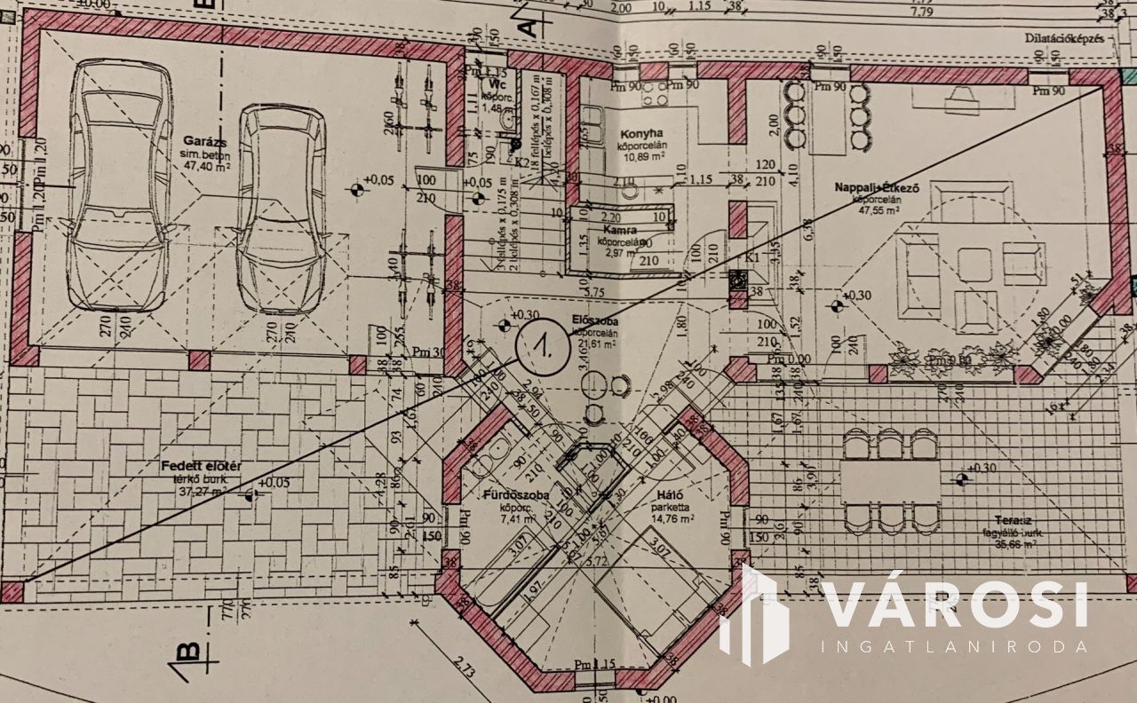 - 47 m2-es garázs - így 4 gépjármű számára biztosított a fedett helyen történő parkolás