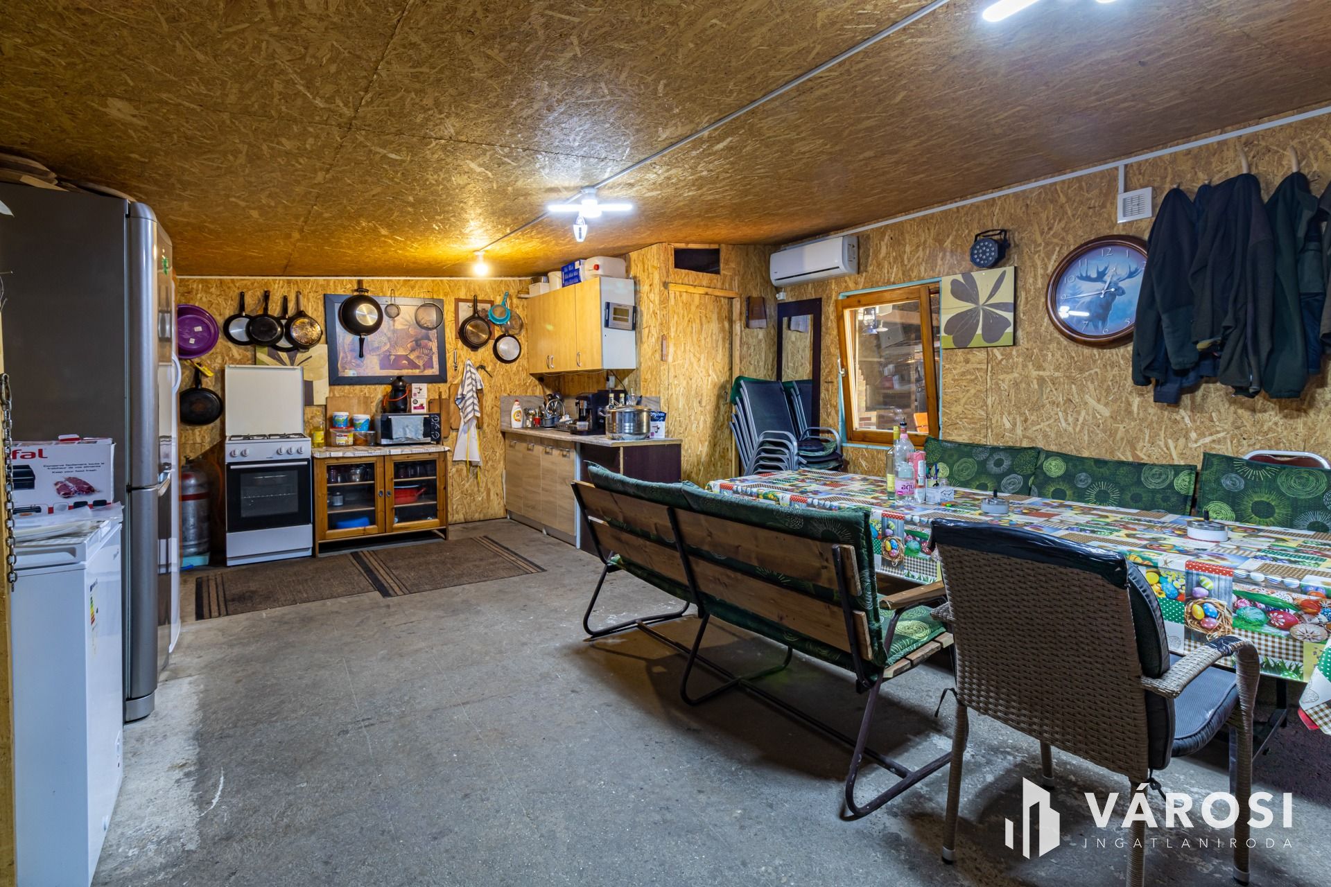 Találunk még továbbá a telken, egy téli-nyári használatra alkalmas, hűtő-fűtő klímával felszerelt konyhát a hozzá tartozó közösségi térrel és egy wc-vel, nagyobb családok számára is kellő férőhellyel.