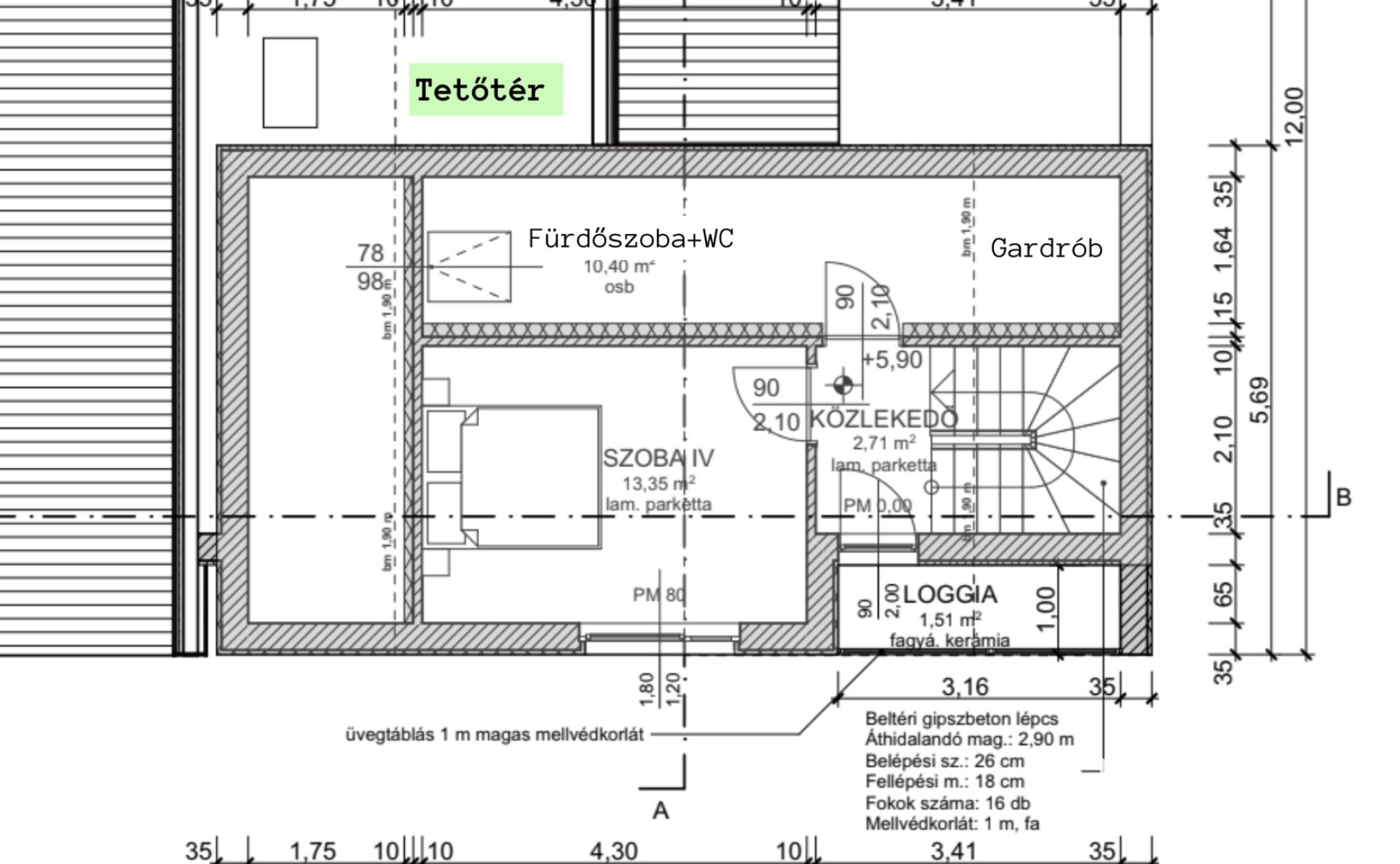 - Tetőtér: Szoba, fürdőszoba+wc, gardrób, erkély (Önnáló lakrészként is használható!)