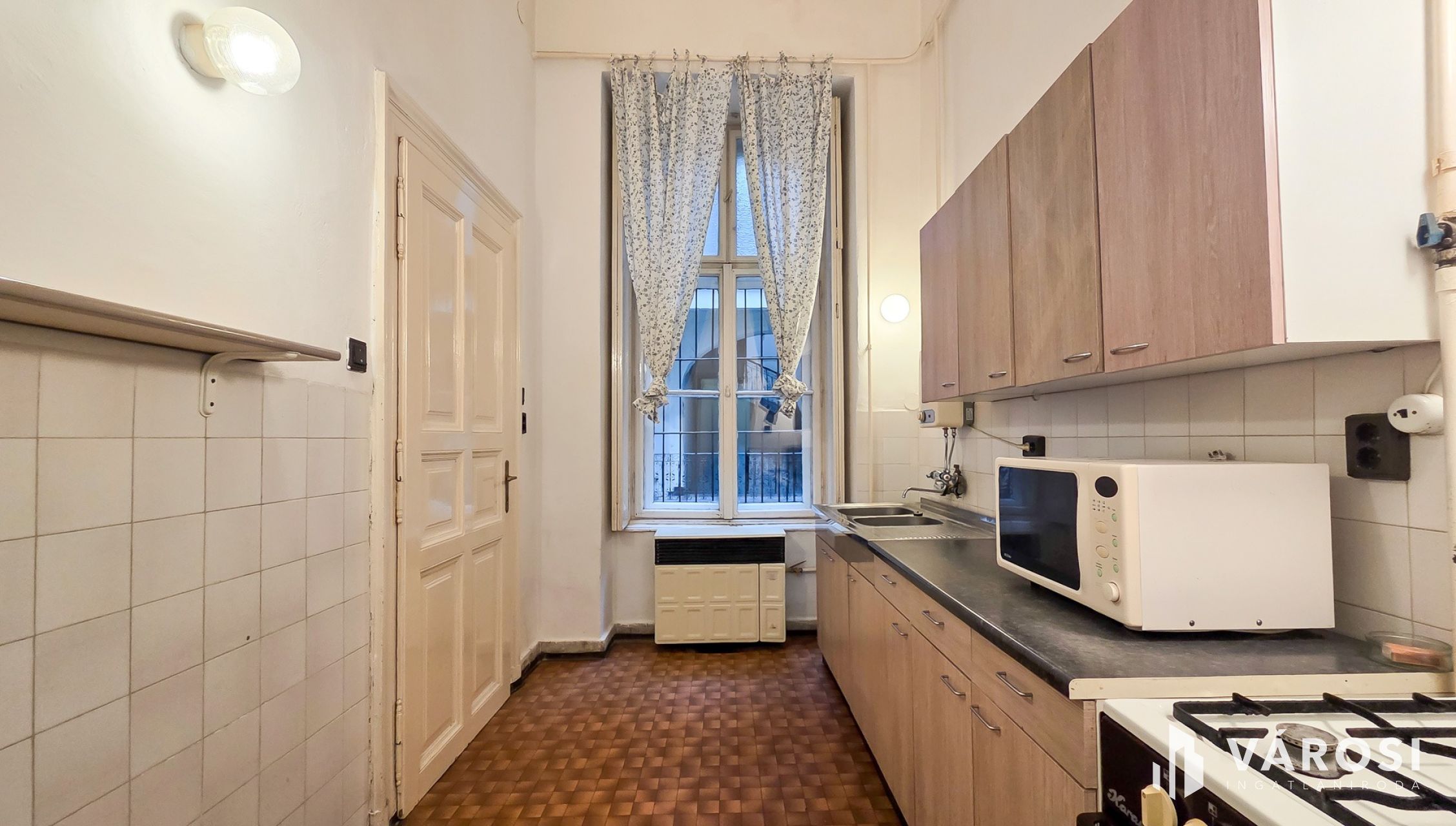 Kiadó a IX. kerületben, a Ferenc körúton egy első emeleti, nappali + hálószobás 50 m2-es lakás.