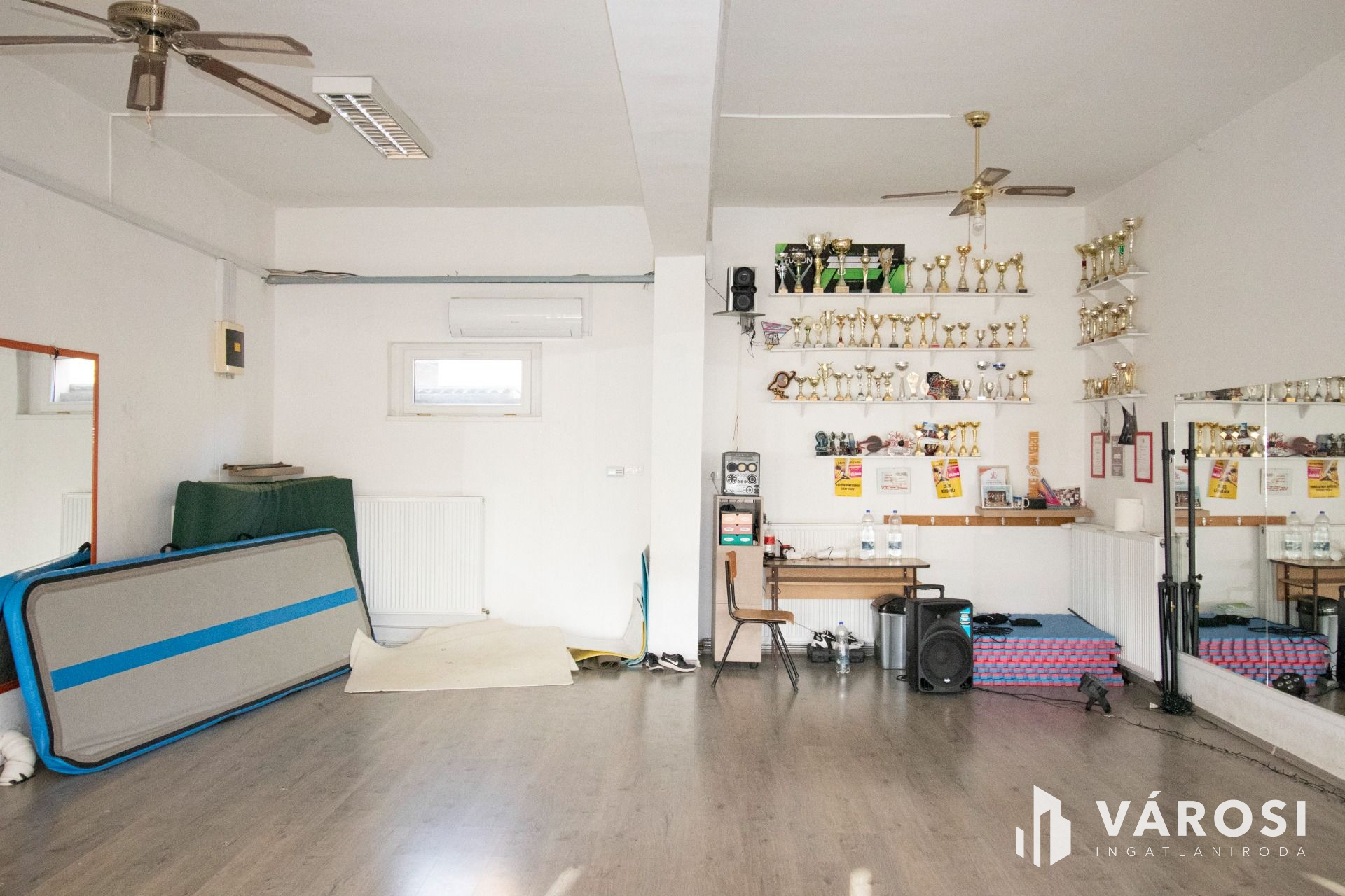 Jelenleg az ingatlan fitness központként üzemel, kialakítása ennek megfelelő. Az épület két szintes, összesen 414 m2-es, földszint+emeletes, lapostetős kialakítású, a két szint fűtése külön gázkazánnal, külön rendszerről, külön gázórával megoldott.