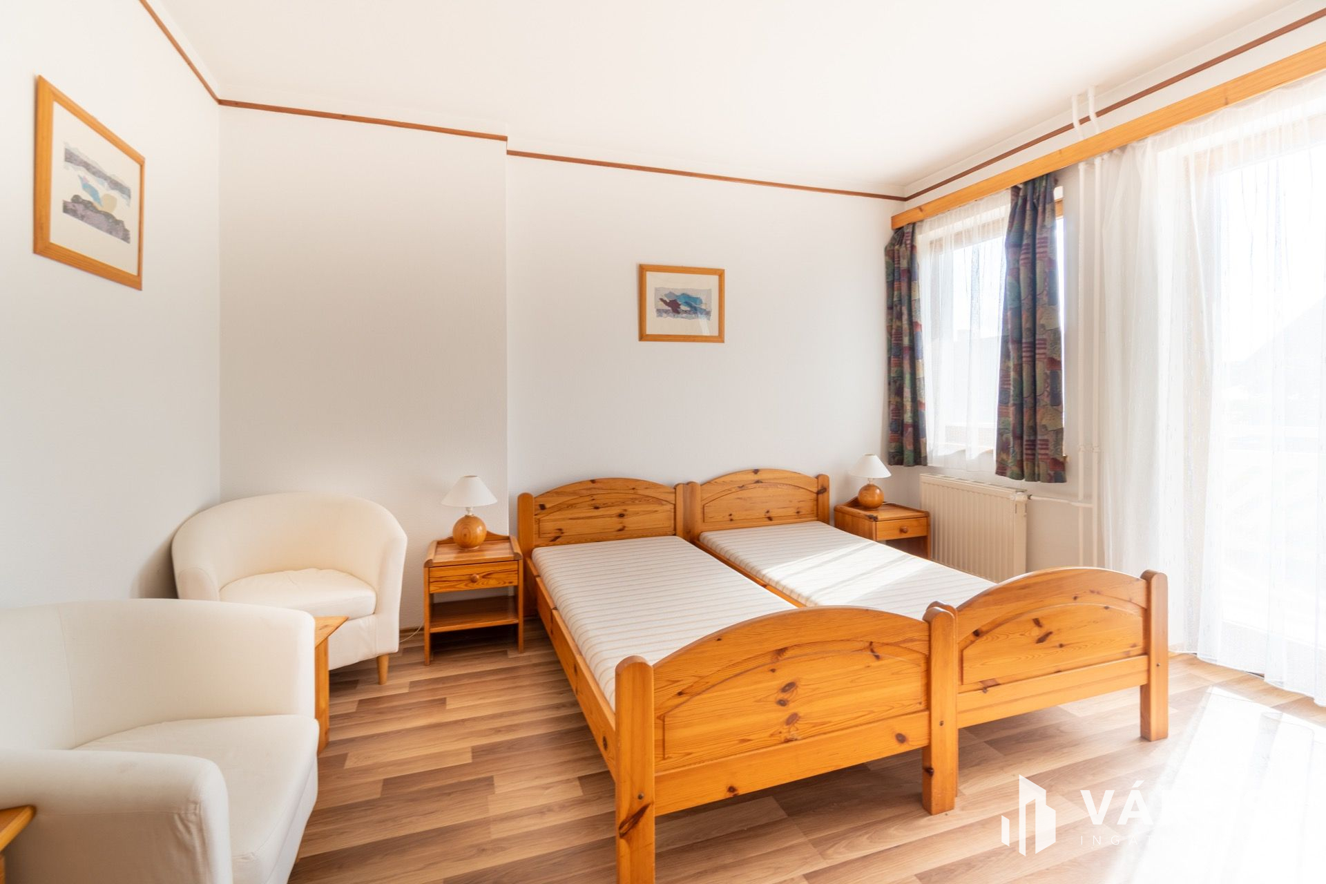 This seasonal hotel with 12 independent apartments is for sale on Vonyarcvashegy, on the northern shore of Lake Balaton. (Yearly operation is also feasible). The building was built in the 1990s and is located on a 3,100 m² lot. Thanks to its excellent design, it provides the future owner with a very private and calm environment. The heated living space is 1,162 m², which can be divided very well. In previous years, it functioned as a company resort.