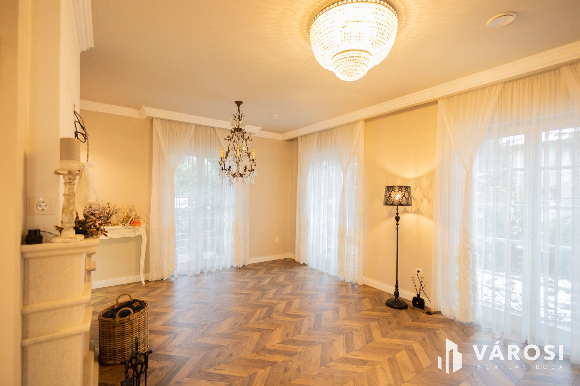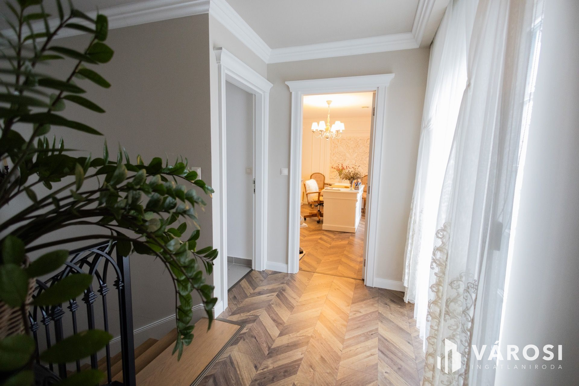 Siófokon, az Aranyparton eladóvá vált egy 2020-ban épült, 310 nm alapterületű, két lakrészből álló családi ház és apartman. Az ingatlan a Balaton parttól 300 méterre, csendes utcában található. Az ingatlanok két szintesek, egy 753 nm alapterületű telken helyezkednek el. A ház 25 cm-es porotherm tégla falazattal épült, külső polystirol hőszigeteléssel, melyek az egyedileg gyártott, 3 rétegű üveggel ellátott fa nyílászárókkal együtt tökéletes hő- és hangszigetelést biztosítanak. Az ingatlanban egyedi gyártású, luxus minőségű anyagok kerültek beépítésre legyen szó szaniterekről, burkolókról, laminált parkettáról vagy az egyedileg, asztalosmester által gyártott bútorokról. A ház gépészete is a legmodernebb technológiákat hordozza, mindkét ingatlanban külön hőszivattyú biztosítja a melegvizet, a fűtést és a klimatizálást, a hőszivattyúk áramellátása napelemekről megoldott. A meleg nyári hónapokban a klíma mellett az ablakokra szerelt zsalugáterek segítik az árnyékolást és így a kellemes hőmérséklet kialakítását. Ezek mellett automata szellőztető rendszer is kiépítésre került. A gyönyörű, parkosított kertben automata öntözőrendszer, illetve több kocsibeálló is helyet kapott. Az első épületrész lakóingatlaniként üzemel, a második épületrész földszintje szintén lakóingatlan, de az emeleten 3 db külön fürdőszobás apartman került kiépítésre, mely évek óta visszatérő vendégkörrel rendelkezik. Az apartmanok a lakórésztől teljesen külön bejáraton keresztül közelíthetőek meg, így teljes nyugalmat biztosítva az itt lakóknak.