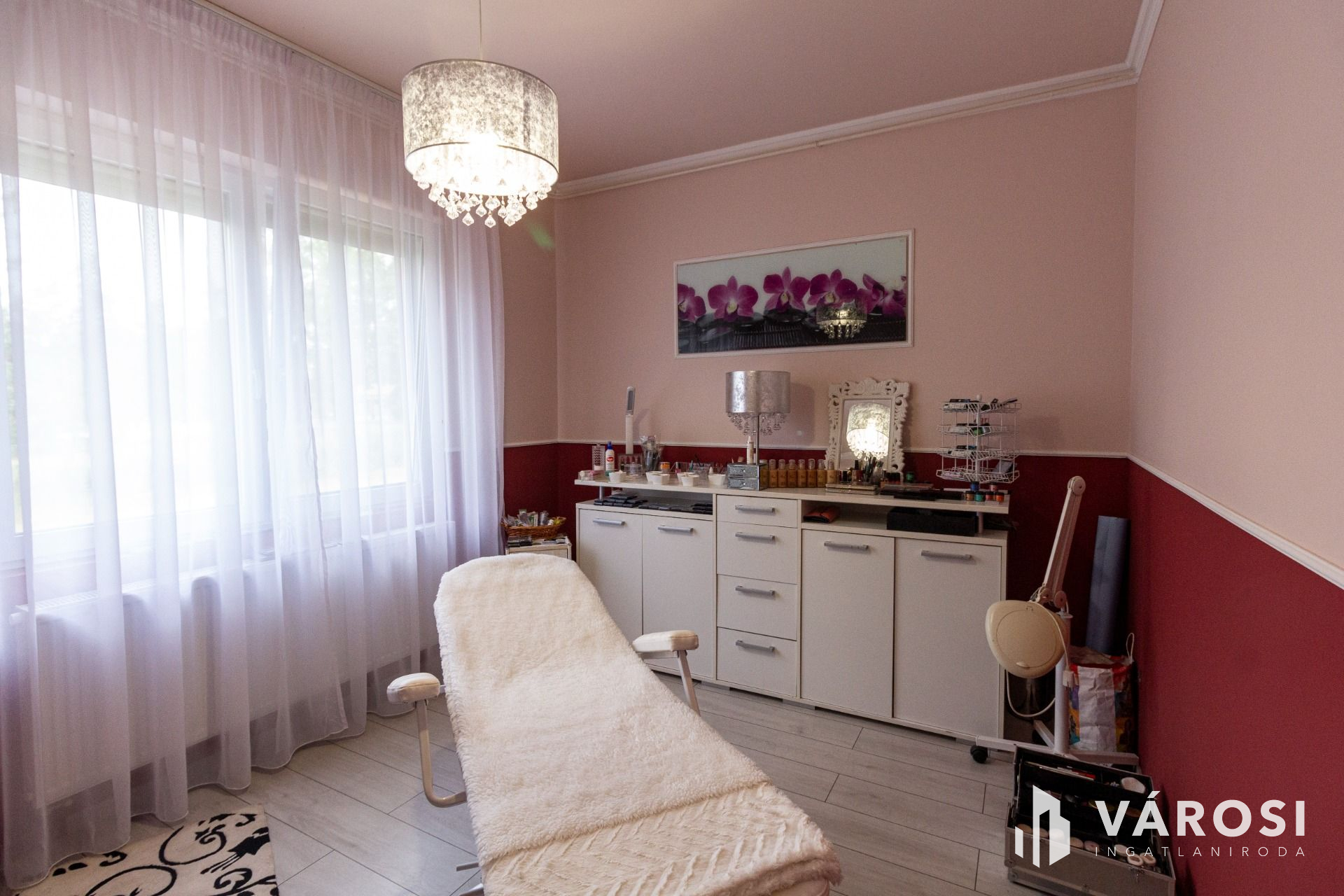 Az eladótér 50 nm-es, laminált burkolatú, a többi szociális helyiség hideg burkolatú.