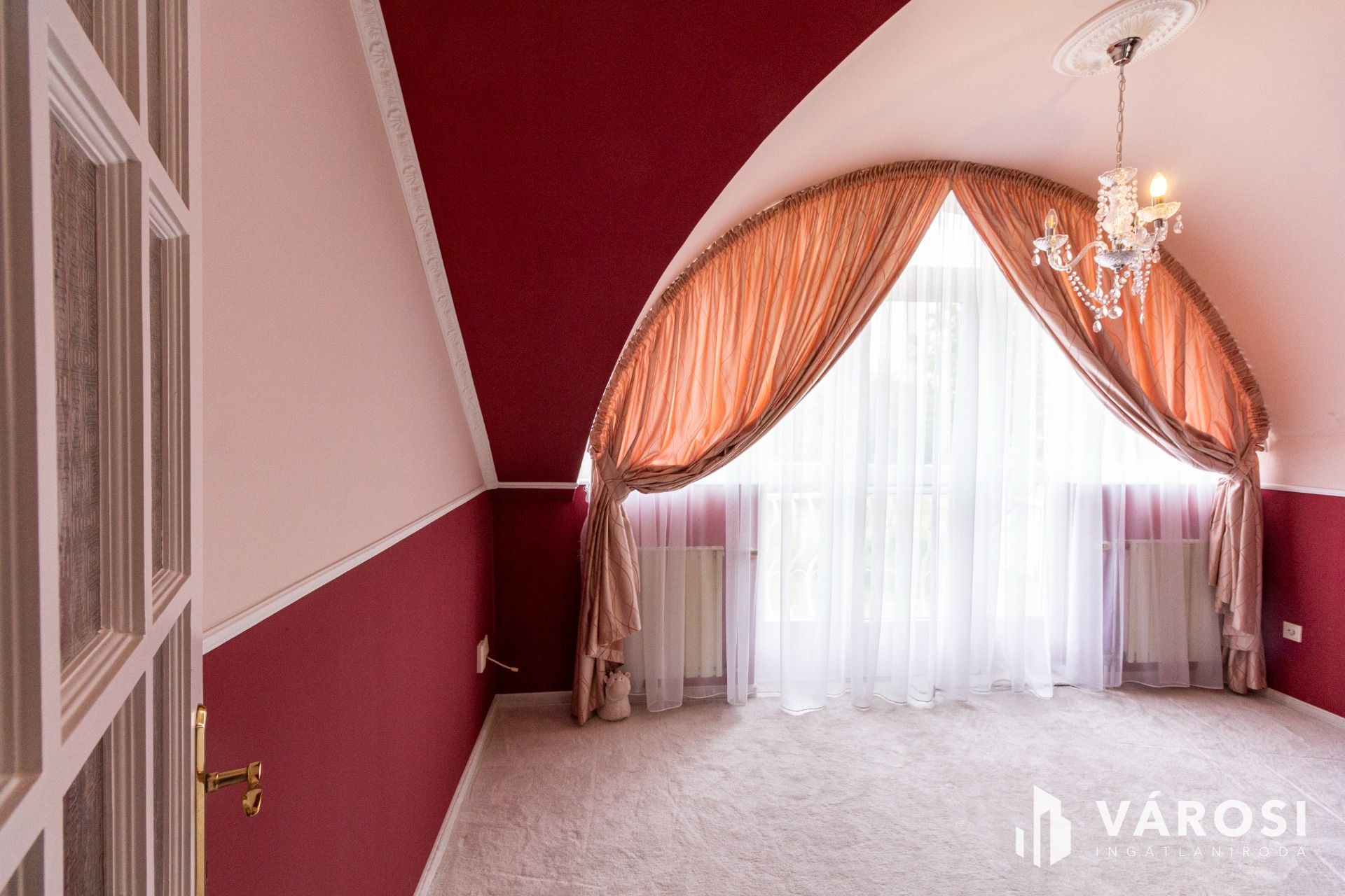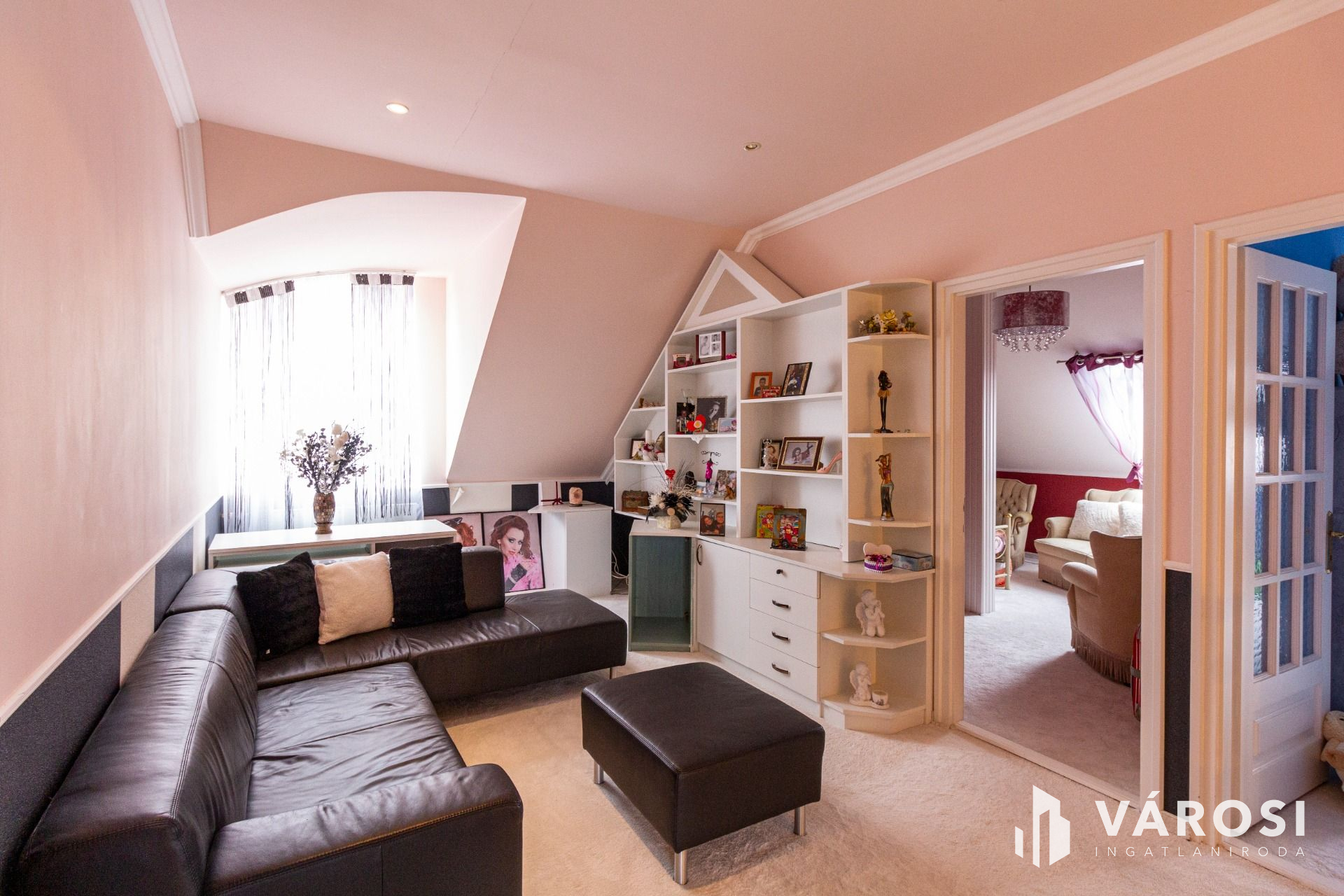 Az emeletre felérve egy társalgóba jutunk, innen érhető el a három külön bejáratú szoba, a gardrób és egy emeleti WC.