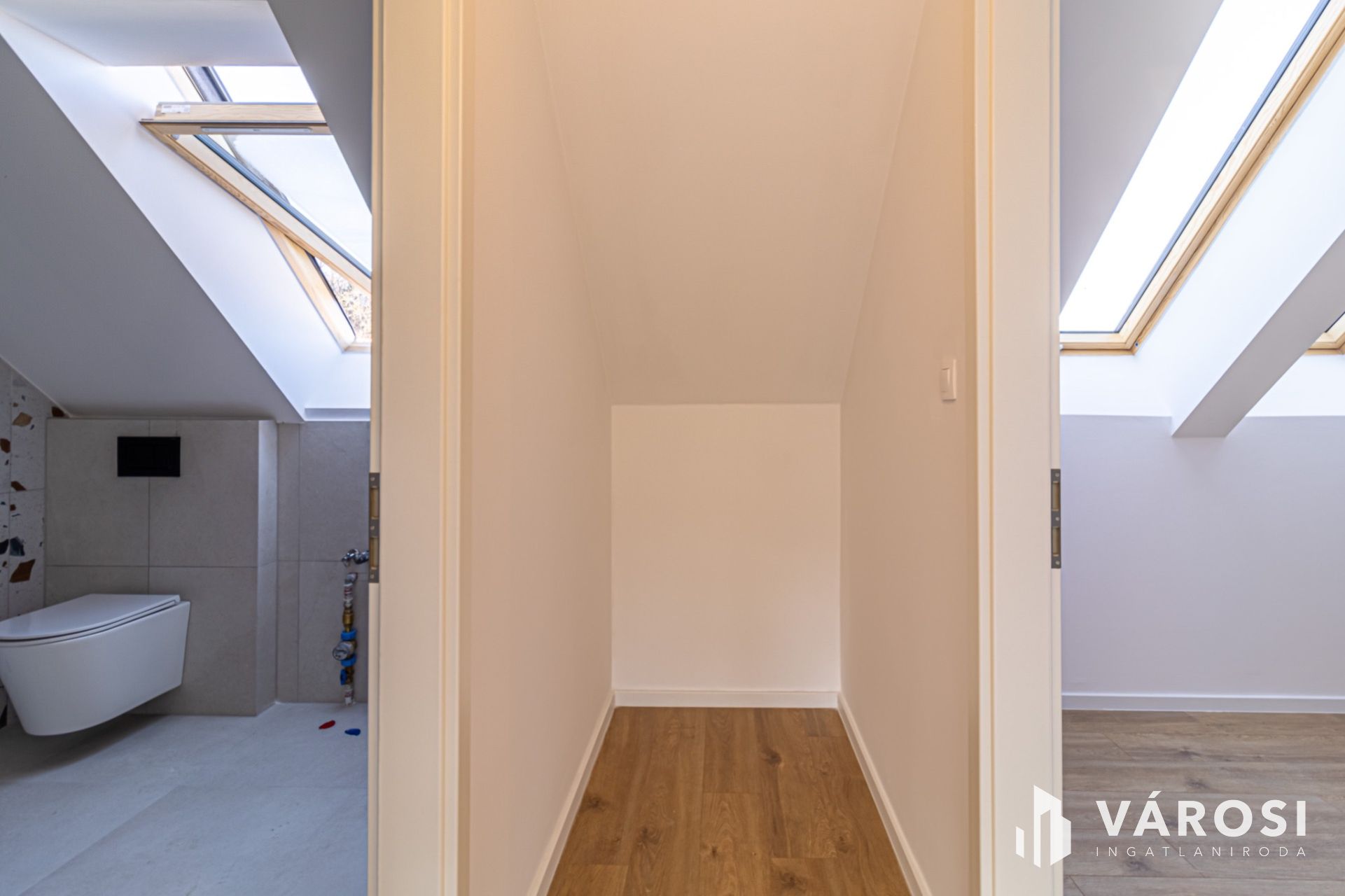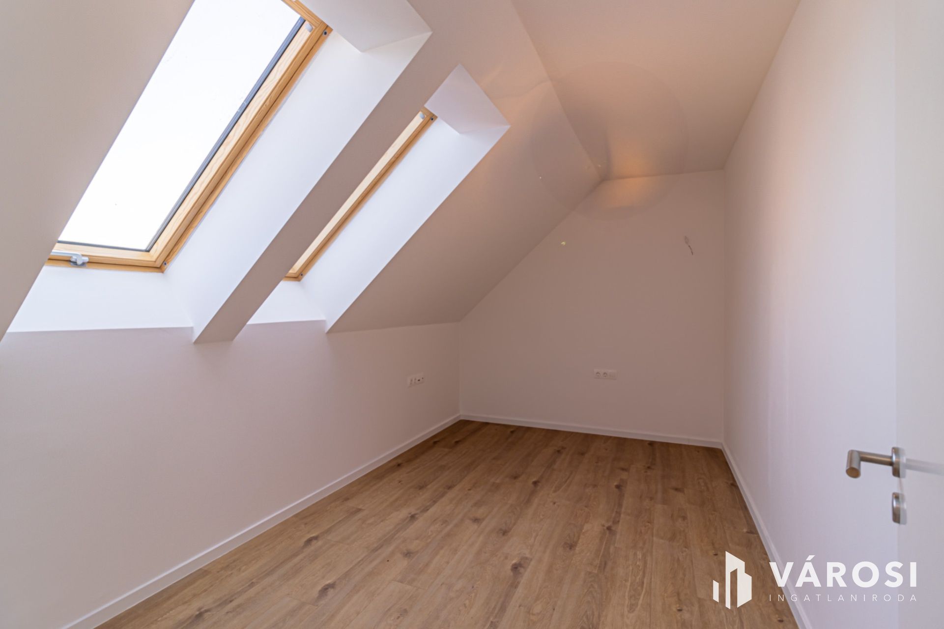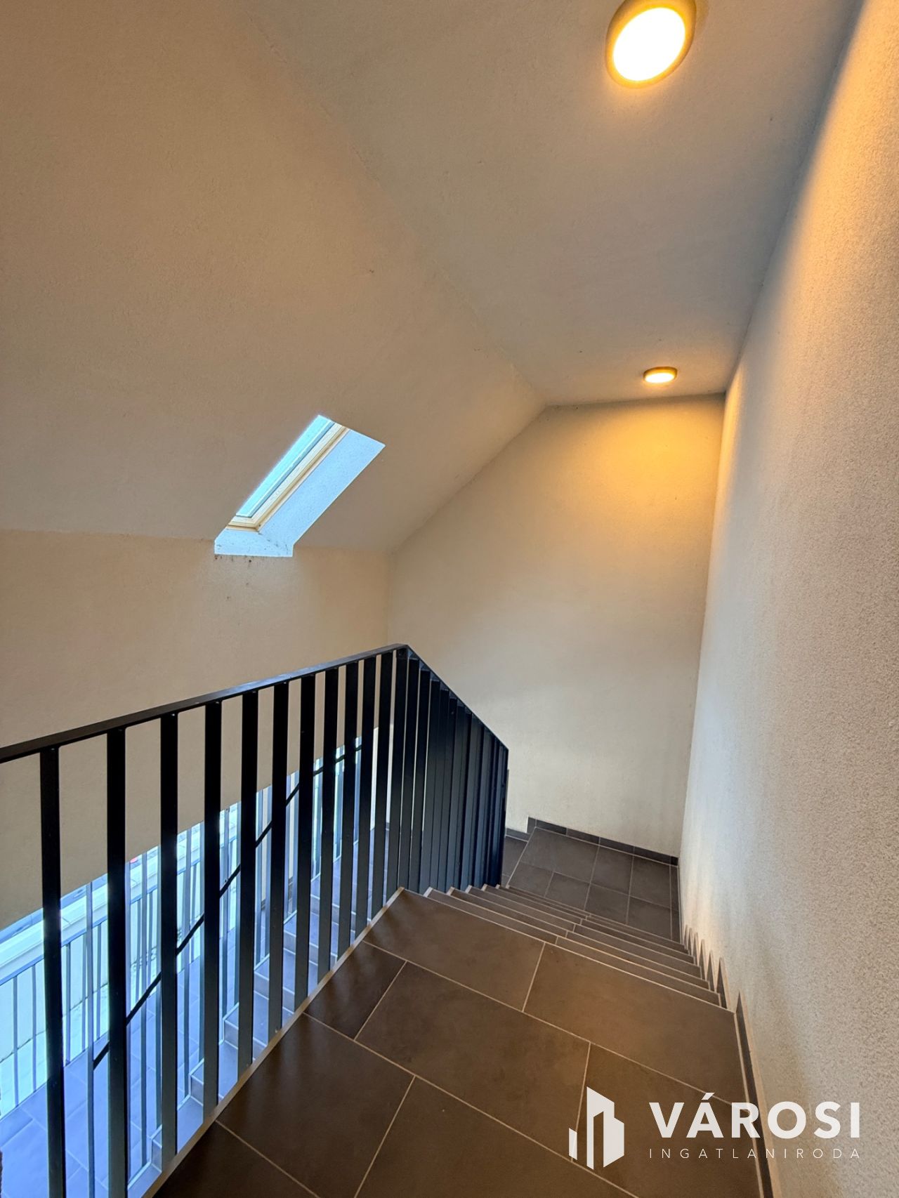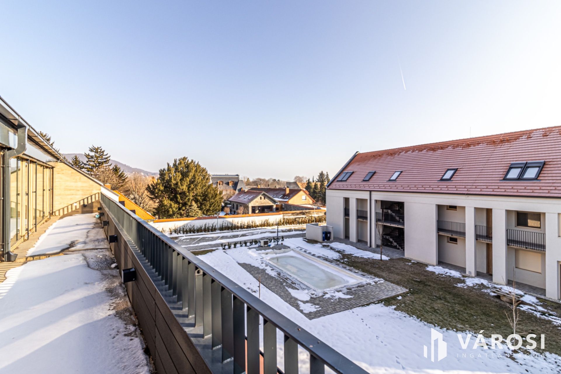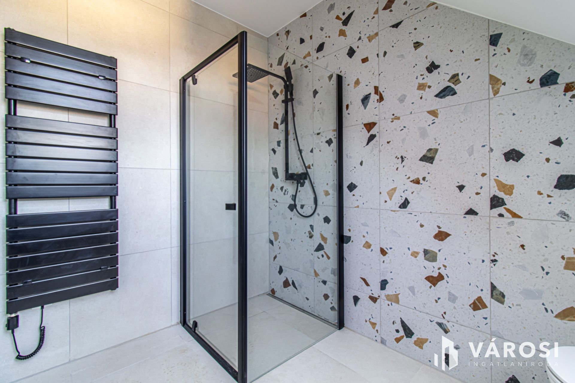 A 105,6 m²-es lakótérhez egy impozáns, közel 23 m²-es terasz kapcsolódik, amely az amerikai konyhás nappali és az egyik hálószoba előtt teljes szélességében végigfut. Délkeleti tájolásának köszönhetően egész nap világos, tágas terei és három külön nyíló hálószobája valódi életteret biztosítanak akár nagyobb család számára is.