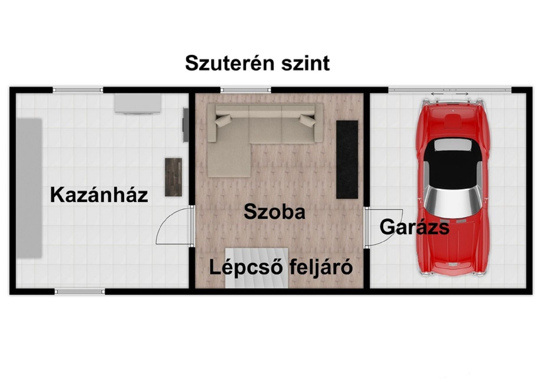 -Szuterén szinten kazánházat, előteret háztartási helyiséggel és a garázst