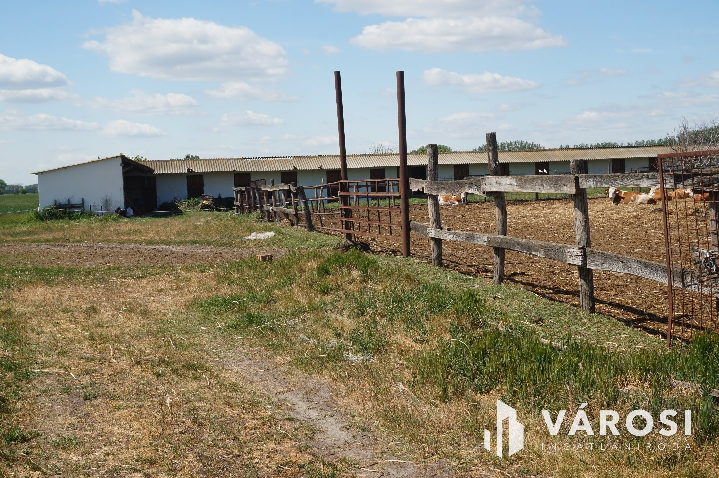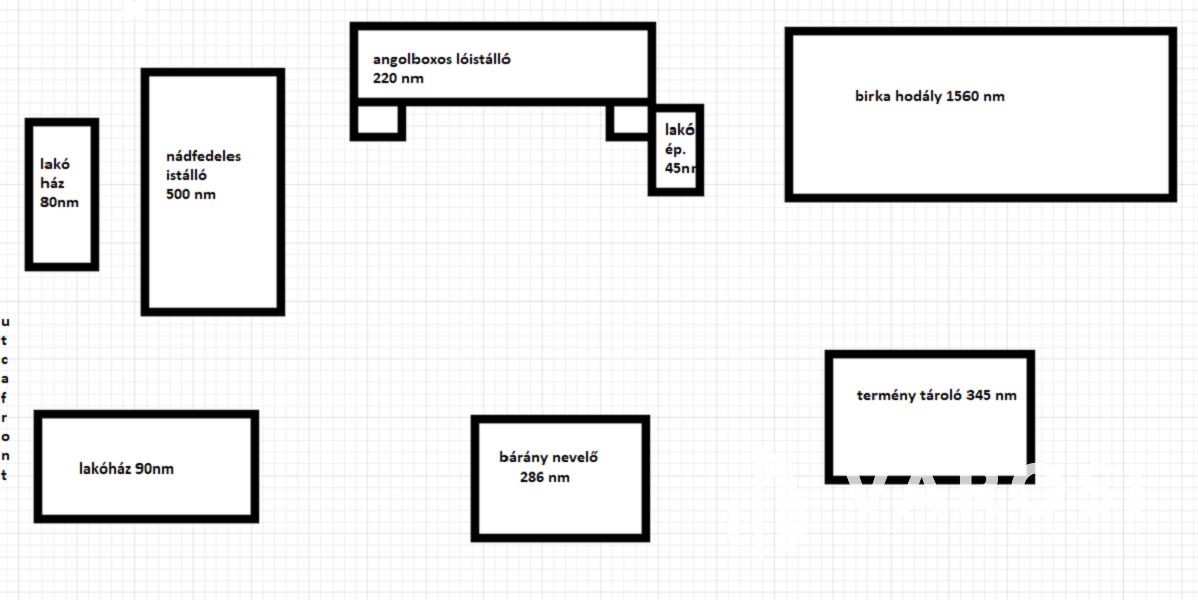 - 104 méter hosszú félkész istálló aminek fele bevasalt tetőszerkezettel fedett ( bármekkora rész lerekeszthető benne ),