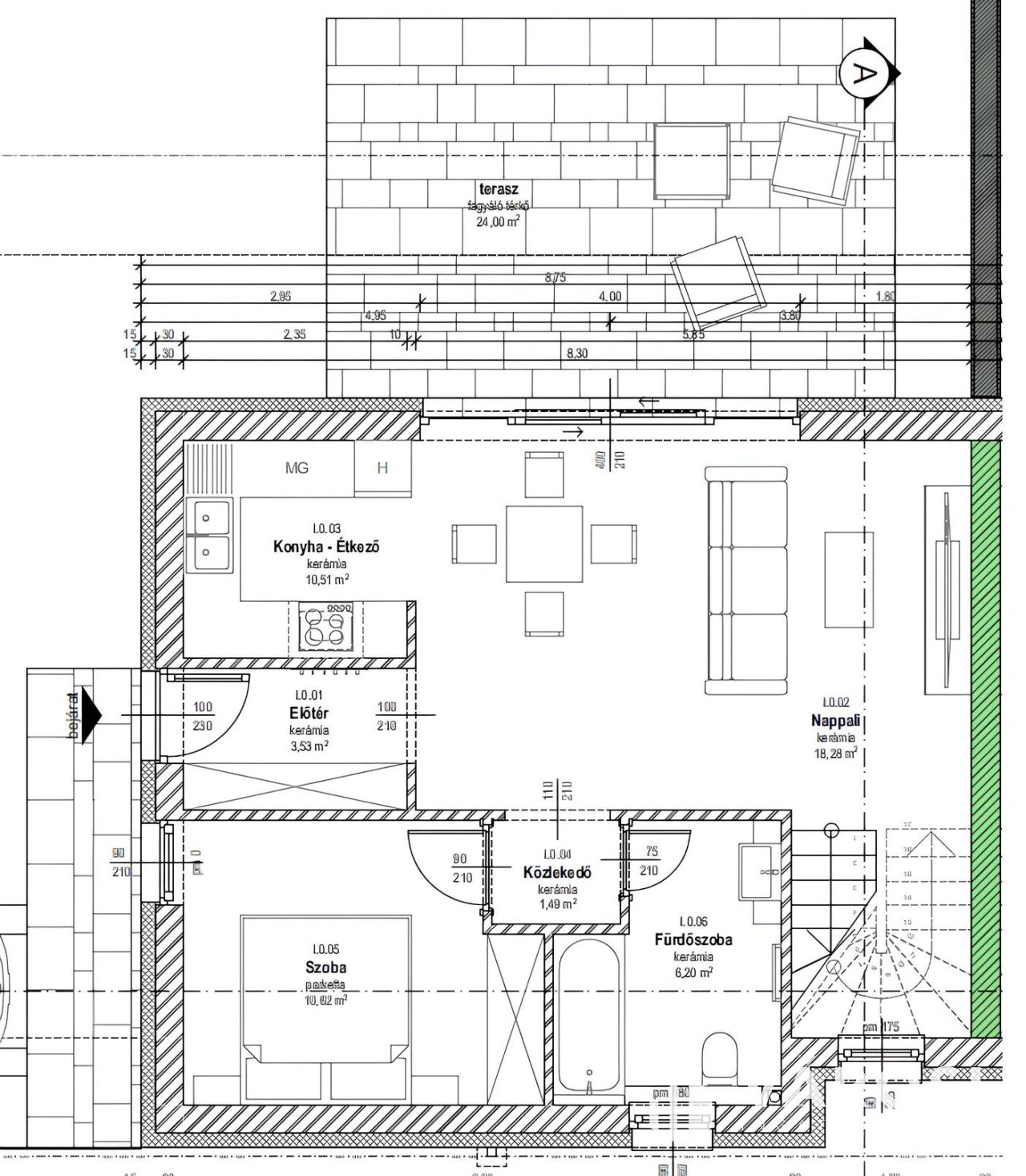 - Energiahatékony megoldások – 15 cm-es grafitos hőszigetelés, hőszivattyús padlófűtés gondoskodik az otthon melegéről