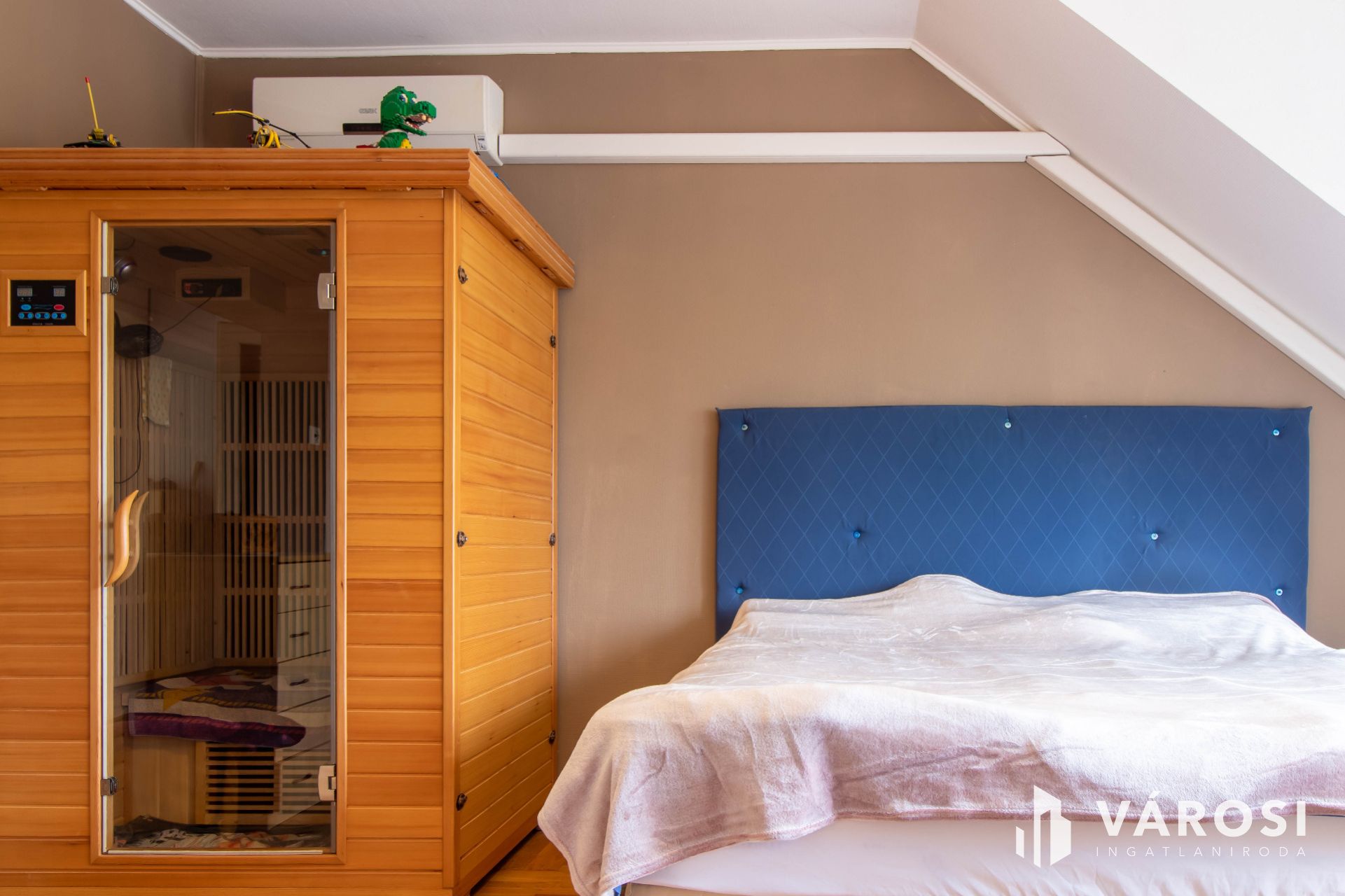 Az emeleten három kényelmes hálószoba található, és egy fürdőszoba. A közlekedő teret akár még egy szoba vagy gardrób is gazdagíthatja. Az ablakokból innen is elképesztő kilátás nyílik: vagy a Pilis kékbe hajló vonulatai, vagy a Budai-hegyek zöldje köszön vissza minden pillanatban.