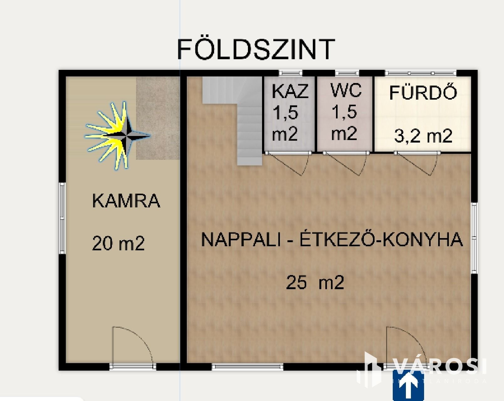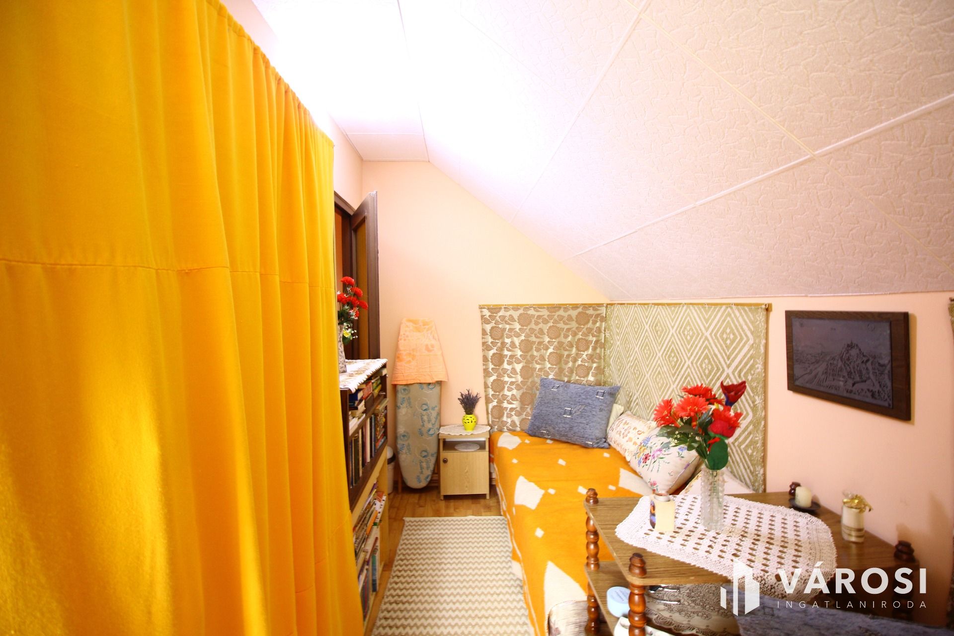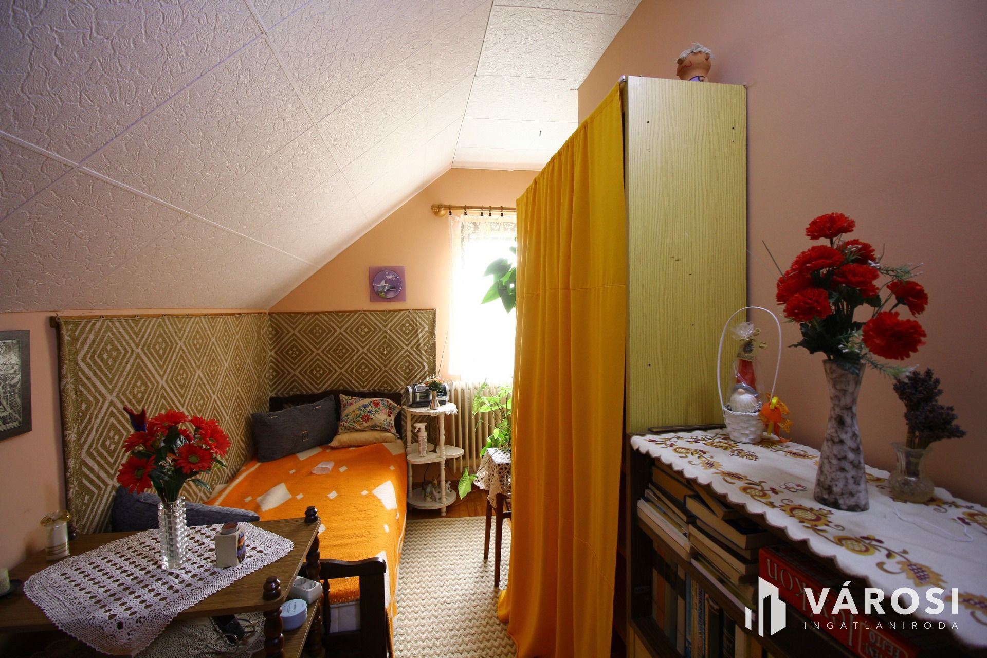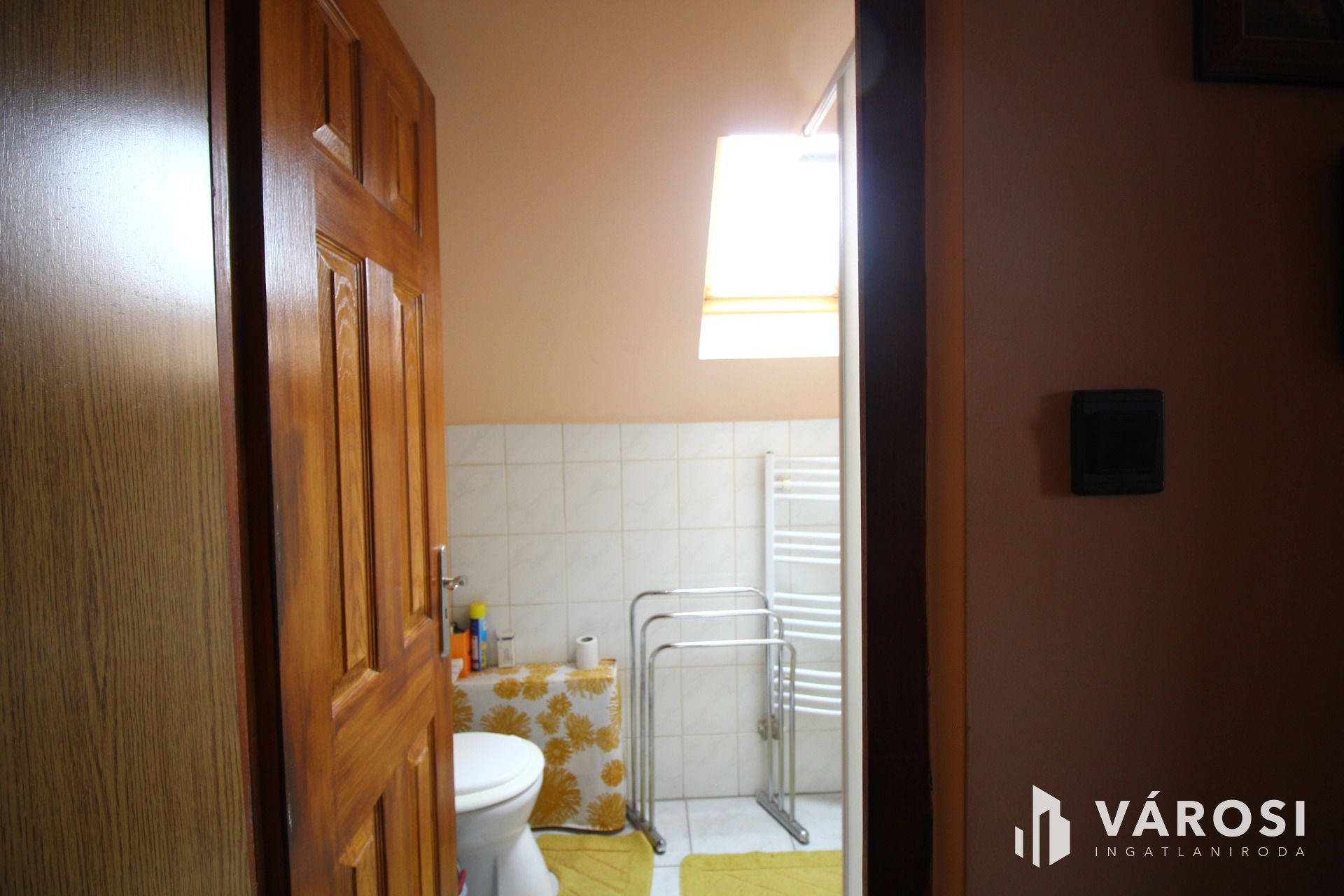 Az alsó szinten francia konyha, nappali, étkező, fürdő és külön WC található, itt mindenhol hideg burkolatot raktak le. Az emeleten 2 szoba és fürdőszoba WC-vel található, a szobák parkettások. A tetőtérben 20cm-es gyapot szigetelést építettek be, az oldalfalak szigeteltek, fal vastagság 41 cm. így az egész ház szigetelése rendkívül jó. Hűtő fűtő klímával rendelkezik.