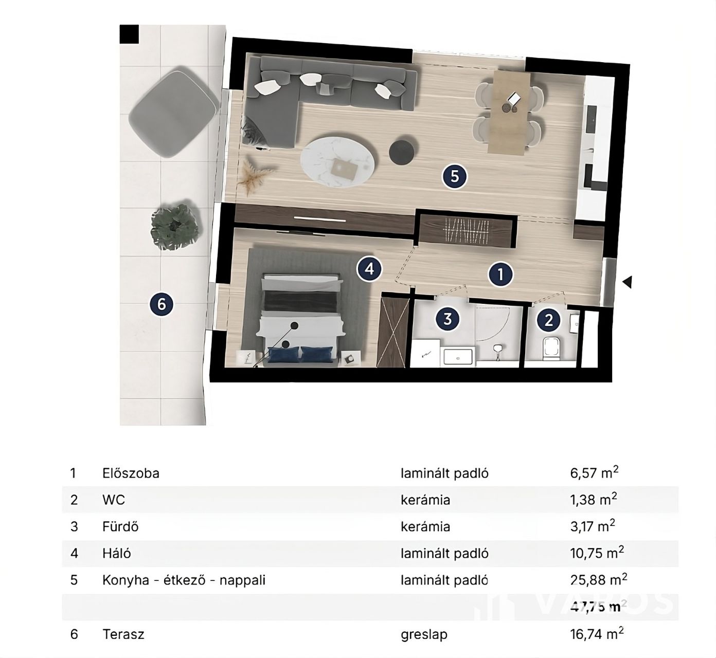 Figyelem! Jelen hirdetésben található alaprajz az "A" épület 102-es lakásához kapcsolódik, a képek látványtervek! További információért, aktuális árlistáért, szabad lakásokért és alaprajzokért keressen bizalommal!