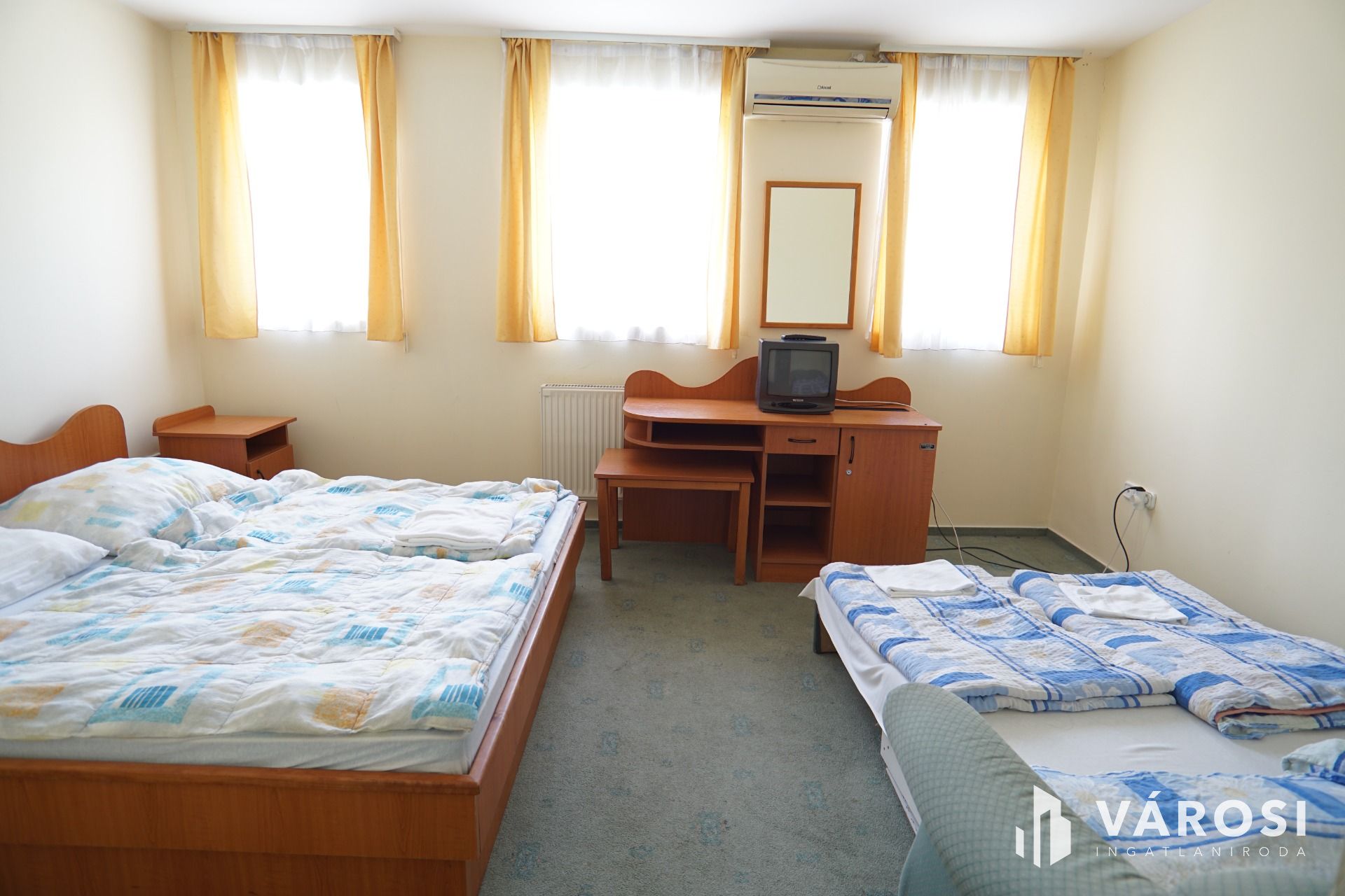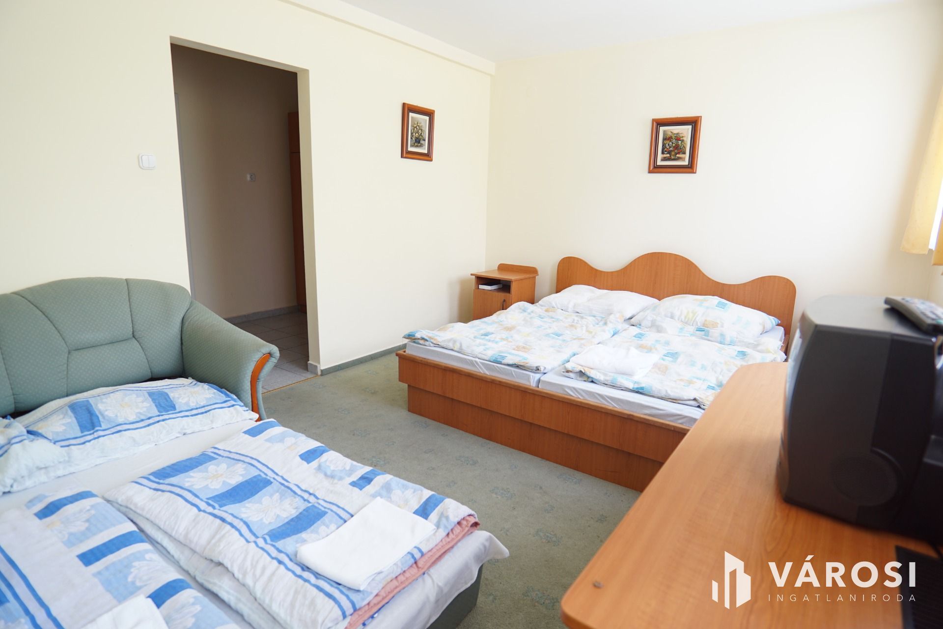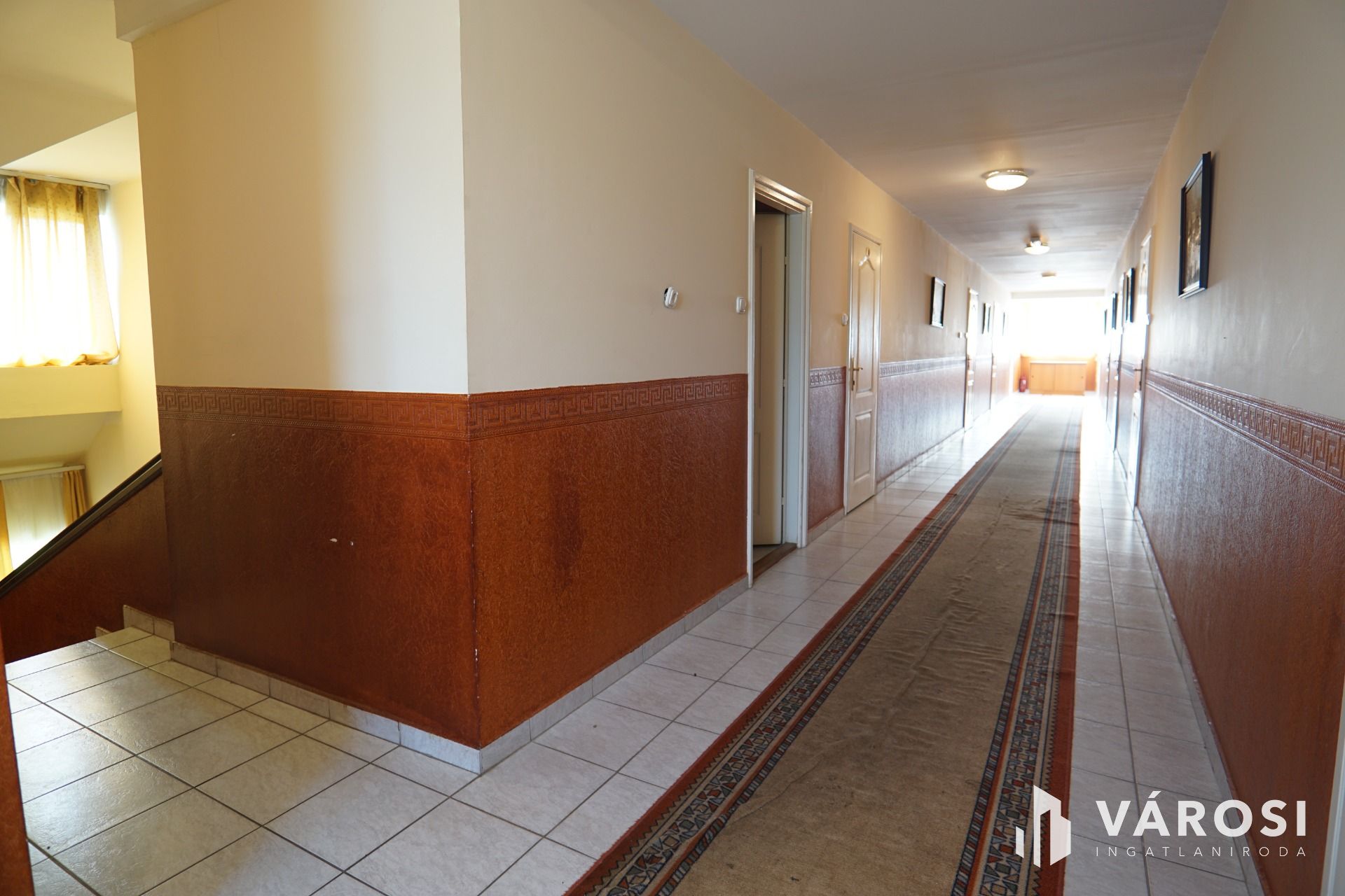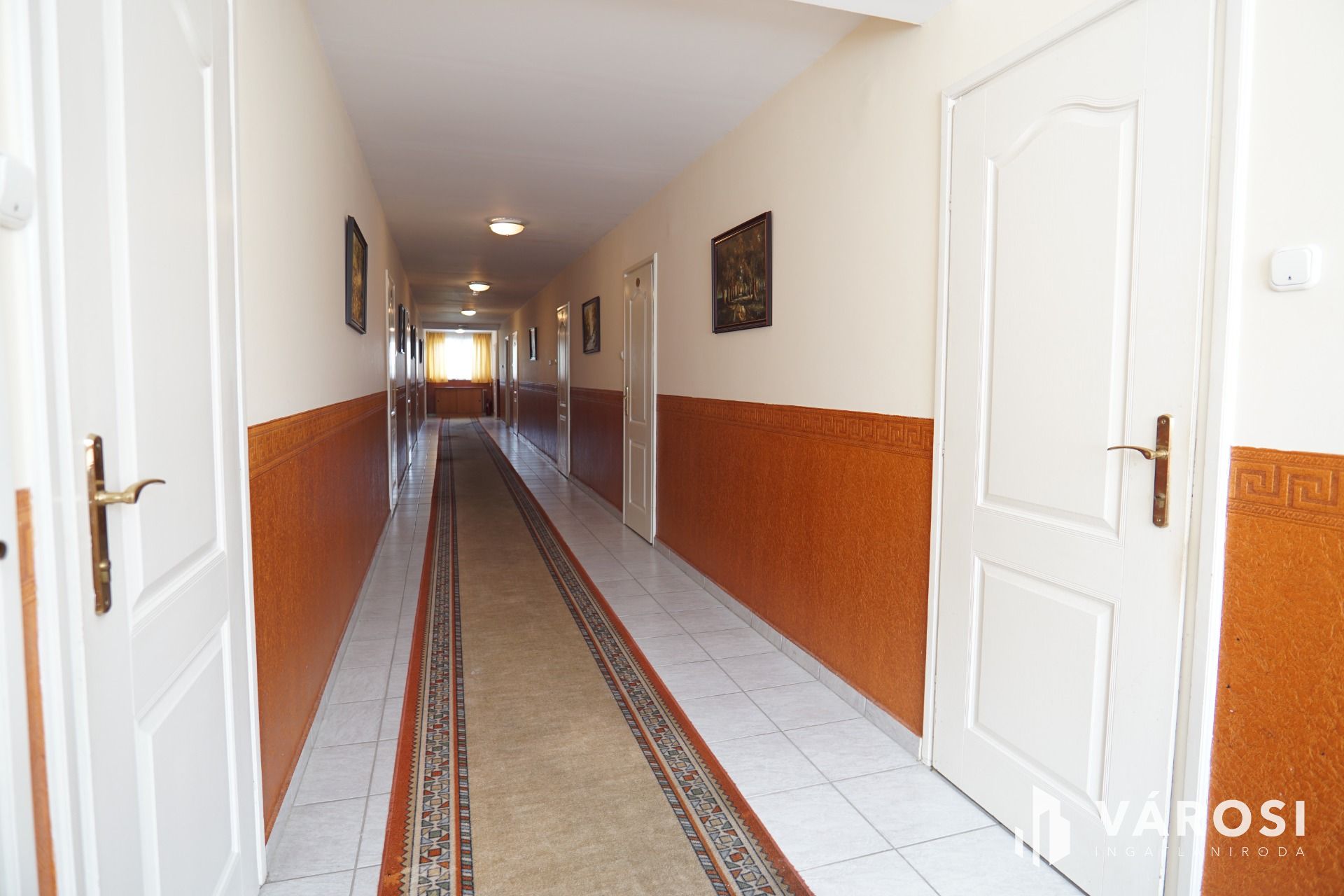Felső szint: közlekedő, iroda, 8 külön bejáratú szoba saját vizesblokkal, háztartási helység, szolgálati helység. Az ingatlan környezete parkosított, gépkocsival körbejárjató. A vendégek részére térkőburkolattal ellátott parklók állnak rendelkezésre. Az ingatlanhoz tartozik még egy külön telek is ami az épület közvetlen szomszédságában található így bármikor van lehetőség a