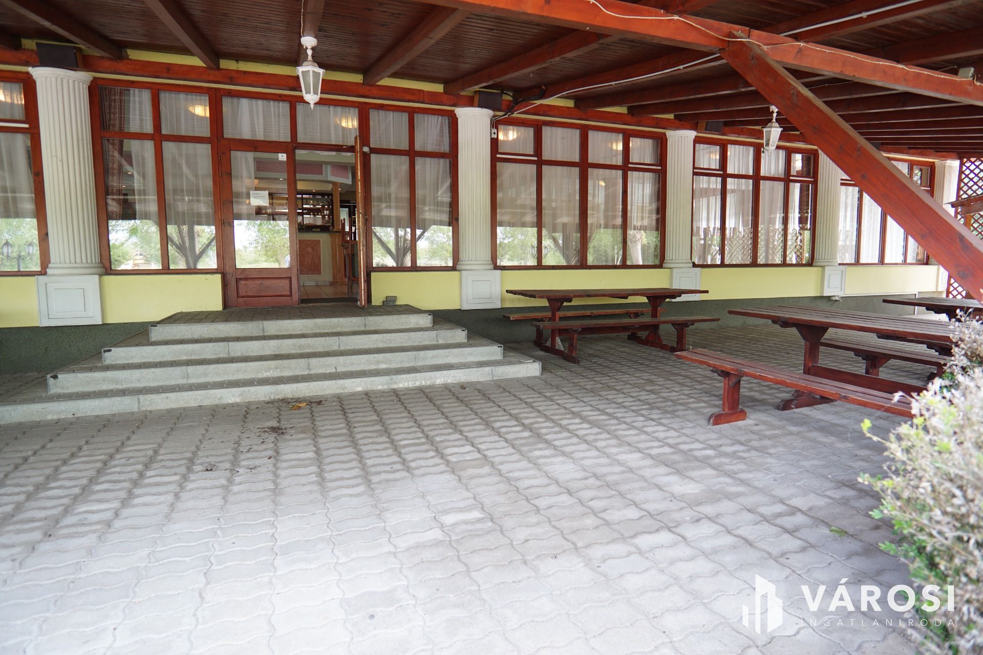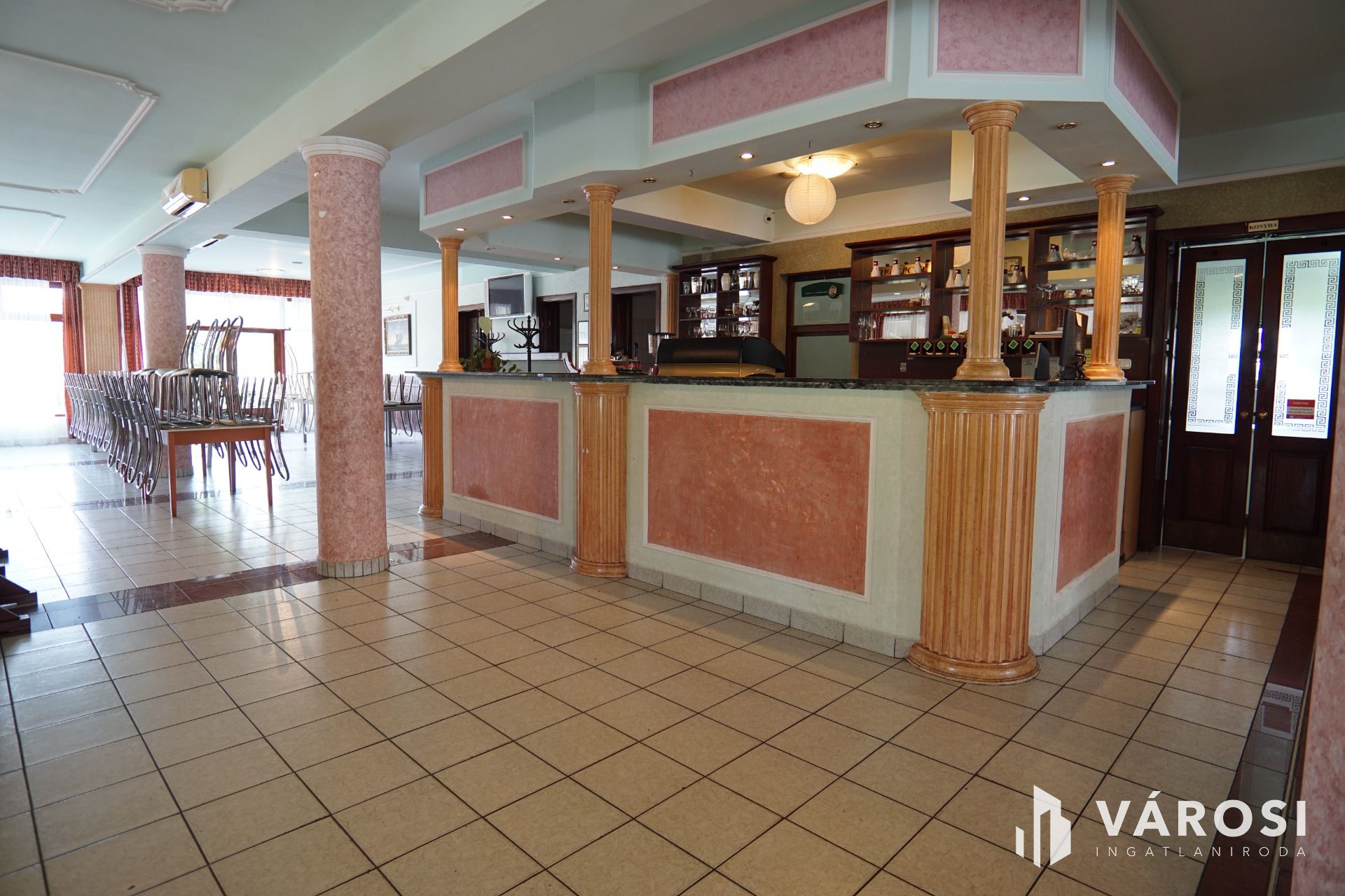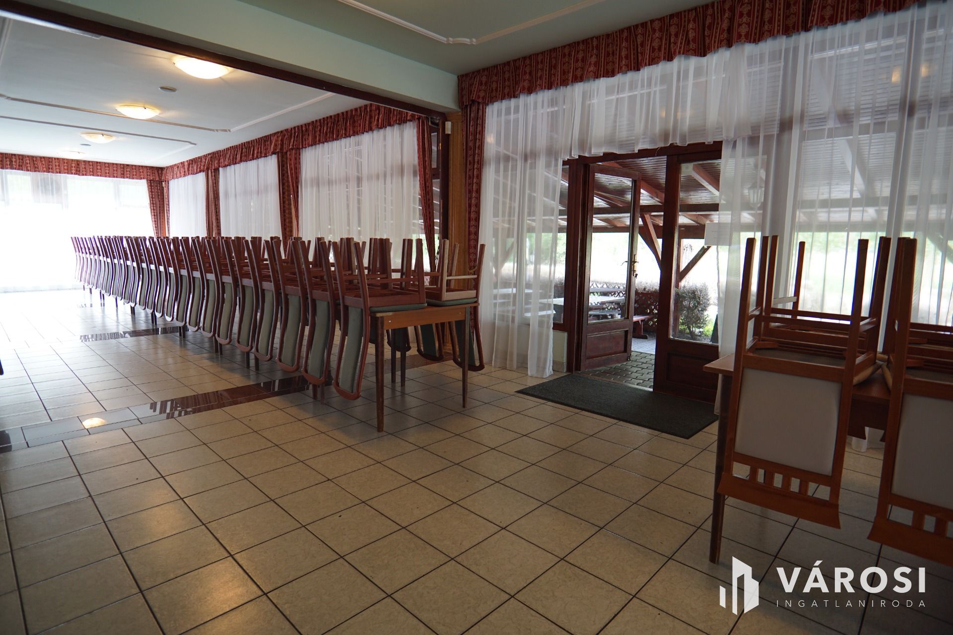 Nagykanizsától pár percre gépkocsival, közvetlen nagy forgalmú fő út szomszédságában vált eladóvá ez a lehetőségekkel teli vendéglátó egység. Funkcionálisan használható kisebb-nagyobb rendezvények lebonyolítására, (lakodalom, születésnapok, céges rendezvények..stb) valamint akár a lokációjának köszönhetően melegkonyhás étteremként és panzióként is üzemeltethető. Étterem rész befogadó képesége 180 fő, a terasz pedig további 100 fő vendég leültetésére alkalmas. A felső szinten található szobák pedig maximum 30 fő ott alvására lett kialakítva. Maga az épület beton alappal, tégla falazattal, cserép tetőfedéssel került megépítésre a 2000-es évben. Az ingatlanhoz érve léphetünk be egy közel 170m2-es fedett teraszra, ahonnan a főbejárati ajtón áthaladva érkezünk az épület központi részébe, mely 251m2-es nagyságának köszönhetően akár étterem akár rendezvényteremként is használható. Ezen légtérből megközelíthető meg a felső szint is ahol 10 külön bejáratú szoba saját vizesblokkal került kialakításra, valamint még ezen szinten háztartási helység és iroda is megtalálható. Az ingatlan teljesen klimatizált. (alsó szint, felső szint minden szoba külön-külön). Az alsó szintre visszatérve található még egy női és egy férfi illemhelység, egy nagy konyha a hozzá tartozó helységekkel és tárólokkal, hűtőházzal, személyzeti öltözővel. Az éttermi részen a dolgozok munkáját segíti, egy igényes nagy italpultrendszer is melyhez kis ablakon keresztük konyhakapcsolat is tartozik. Az ingatlan fűtése egyedi gáz cirkó, mely radiátorok és padlófűtésen keresztül szolgáltatja a meleget.
