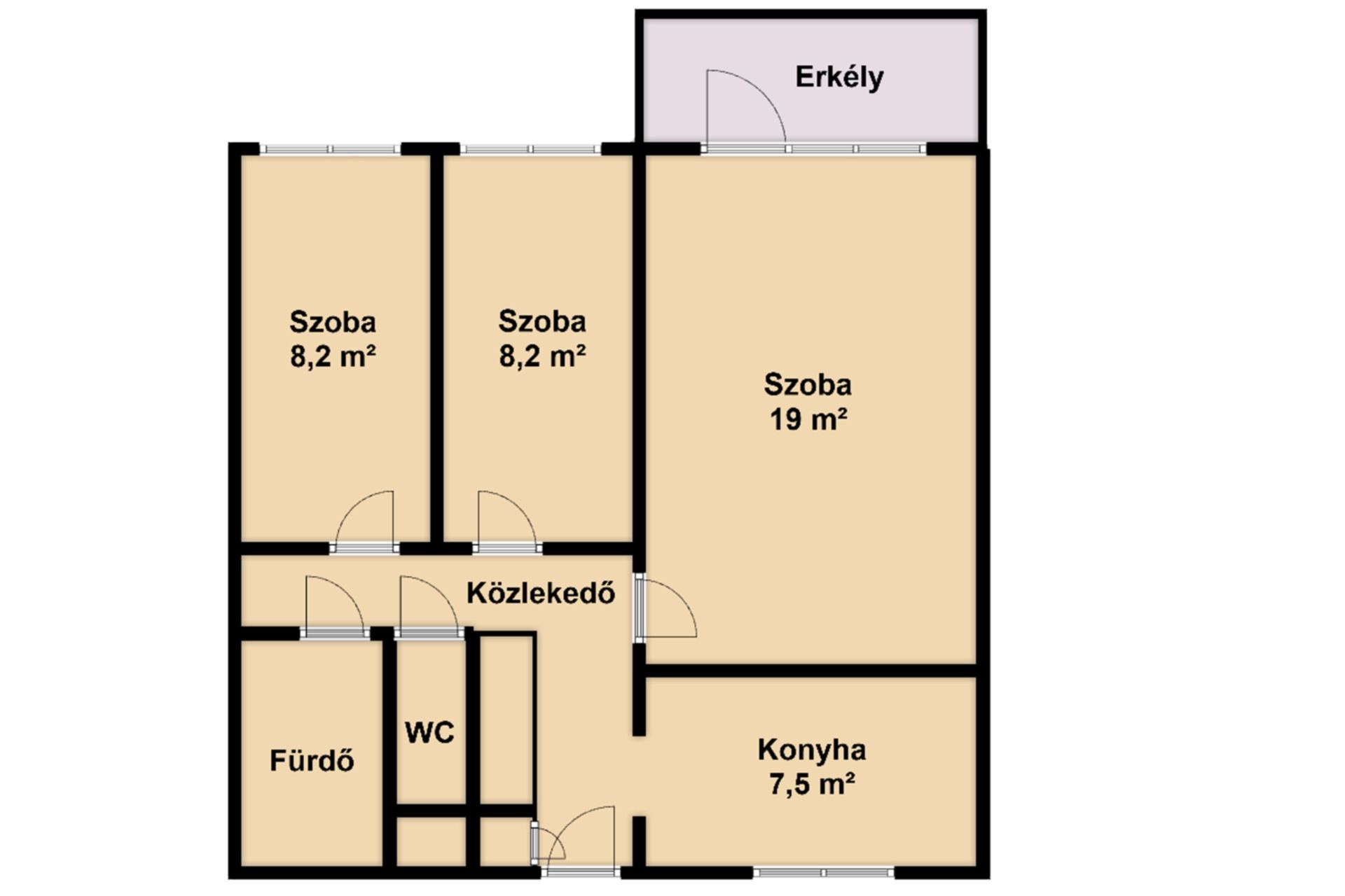 három külön nyíló szoba
