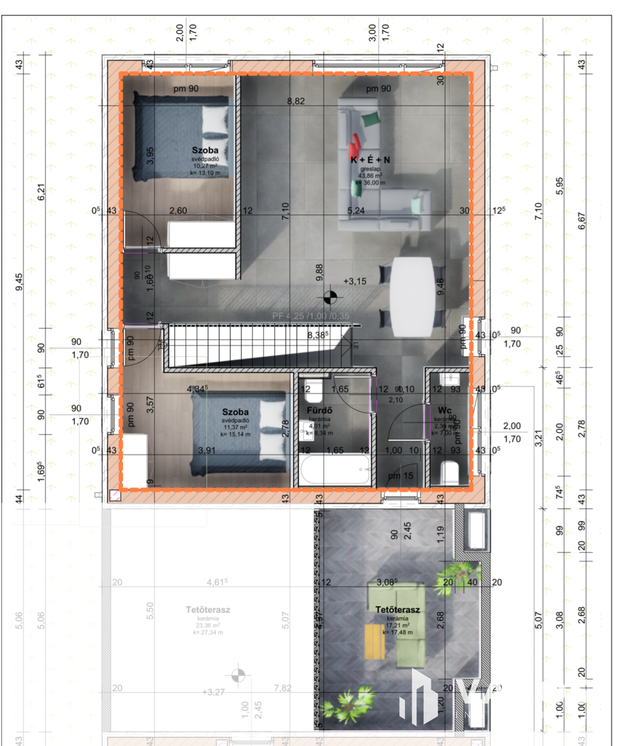 - Tetőszerkezet: Bramac betoncserép fedéssel