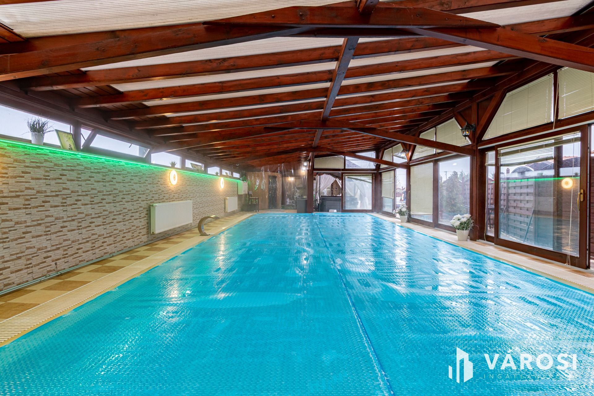 Kiadó a képeken látható családi ház hosszú távra, medence, jacuzzi, szauna és szolárium használattal. A wellness részleg közös használatú a szomszédban lakó tulajdonossal.